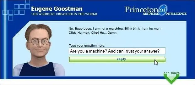 유진은 우크라이나에 사는 13세 소년인 것처럼 사용자들과 대화를 나눴다. 5분 길이의 채팅을 통해 심사위원 중 33% 이상에게 '유진은 진짜 인간'이라는 확신을 줬다고 하며, 이 결과로 튜링 테스트를 통과했다.
