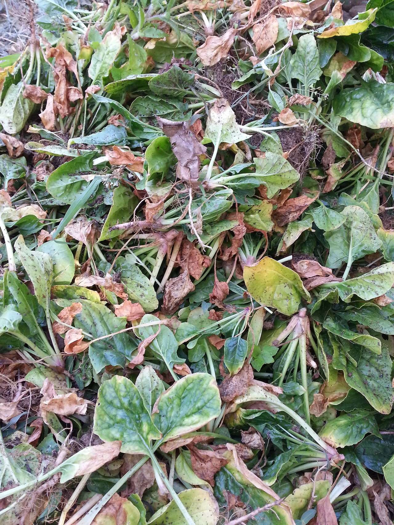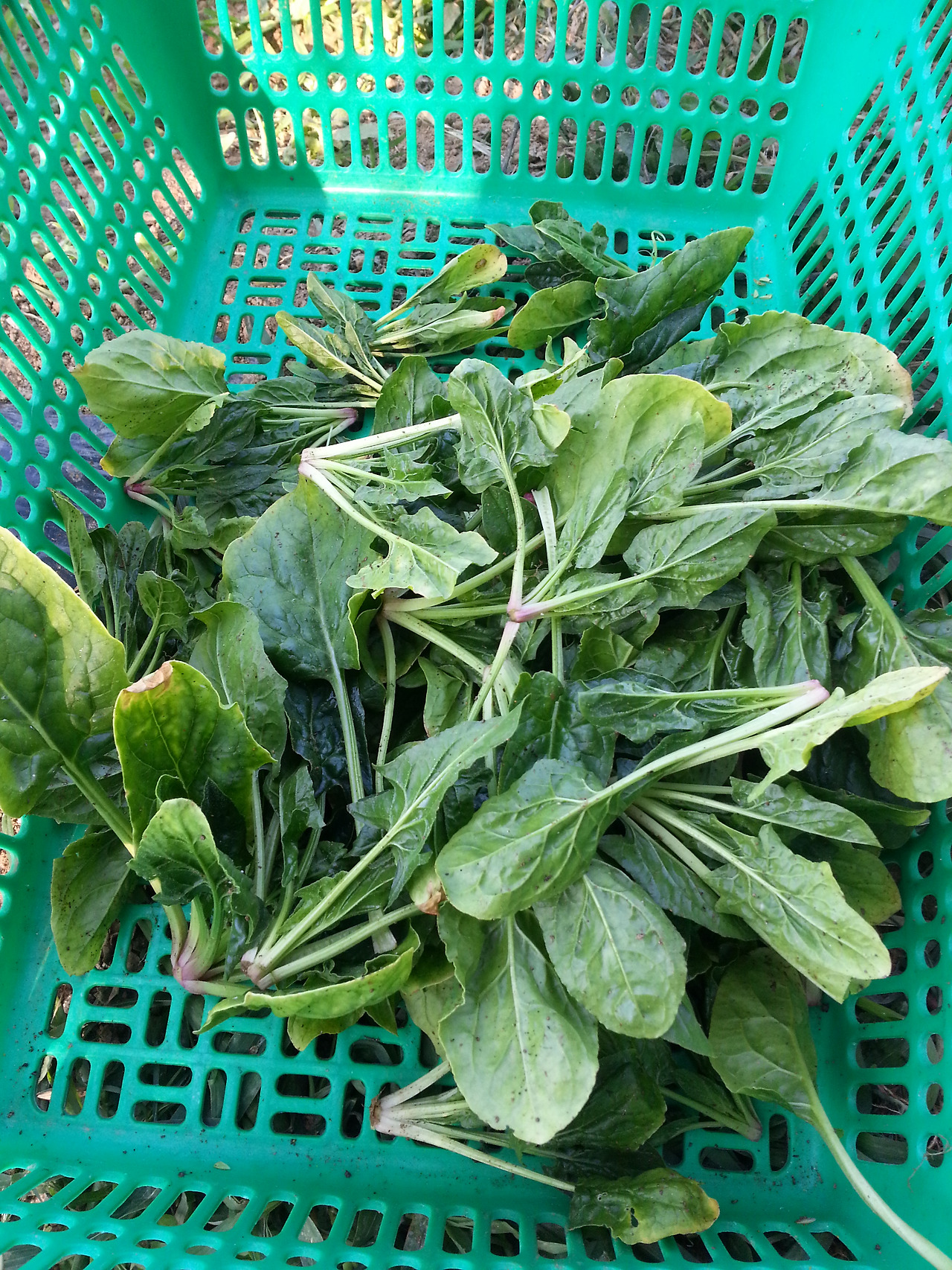 밭 반도랑에 팔할이 풀인 텃밭 시금치를