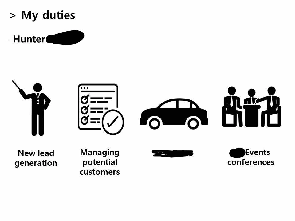 그 다음은 간단하게 내가 전 직장에서 했던 일을 이모티콘을 통해서 간략하게 설명하였다.