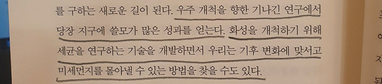우주 개척의 과정에서 개발되는 기술은 당장 지구에도 용이하게 쓰일 수 있을 것이다.