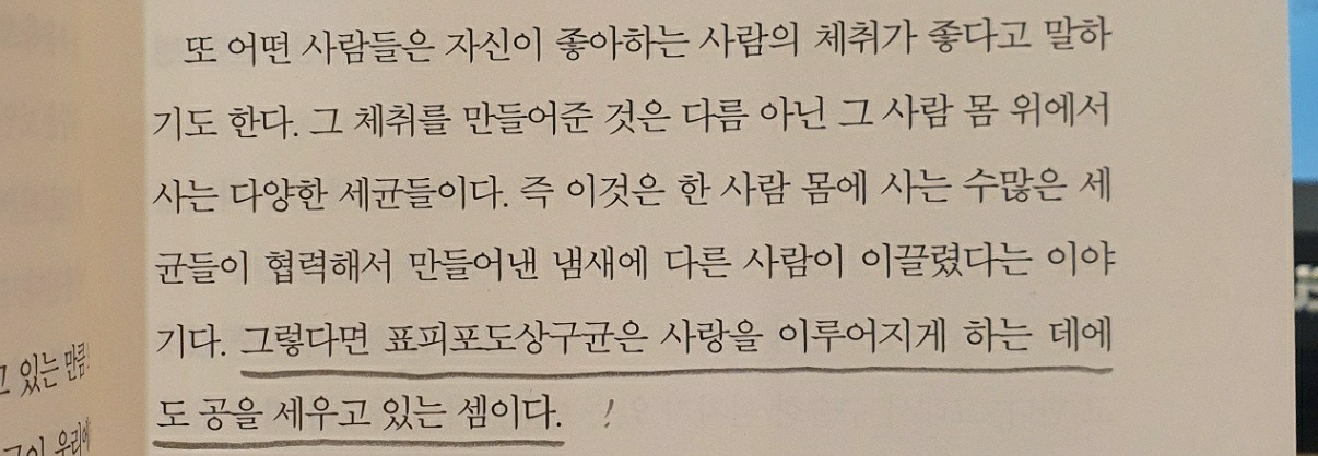사람의 체취마저 세균으로부터 좌지우지된다는 사실은 꽤나 충격적이었다. 잠시 각자의 체취가 어떤지 킁킁거려보자.