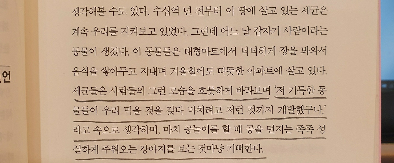 세균을 의인화하여 사람을 바라보는 시선은 저자의 독특한 서술방식을 보여준다.