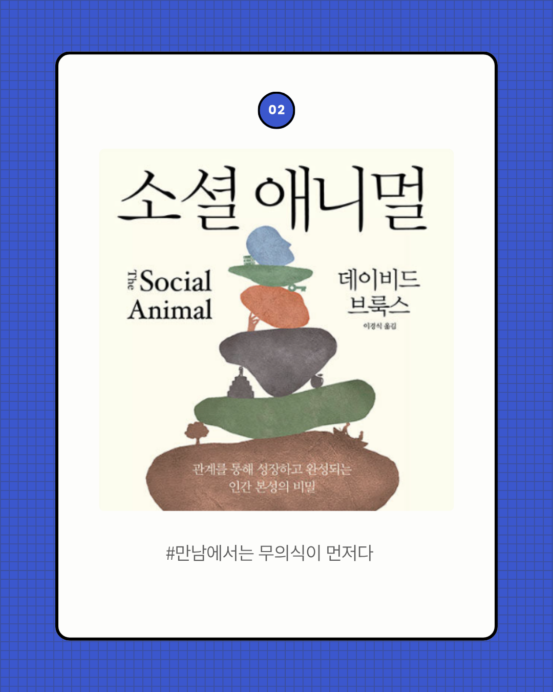 데이비드 브룩스의 <소셜 애니멀>은 인간의 본성과 관계를 진화심리학의 관점에서 예리하게 분석하고 있다.