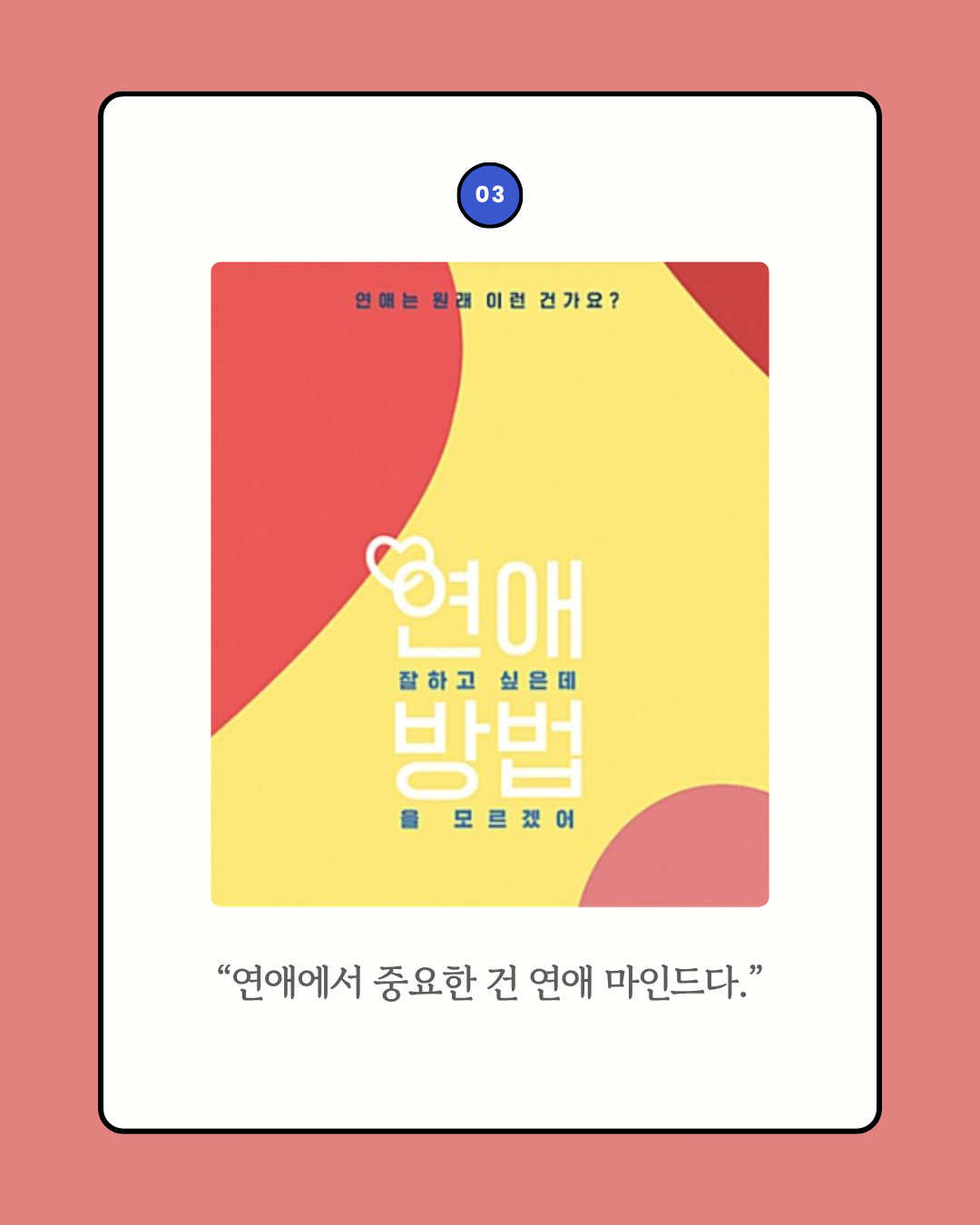어떤 모임을 가든 '기승전연애'로 이야기가 마무리되곤 한다. 그래서 본격적으로 연애 썰을 풀어보고 팁을 공유하기 위해 '주제독서'를 진행하기로 했다.