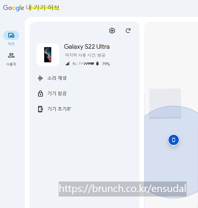 혹시나 싶어 구글에 로그인해서 '내 기기 찾기' 기능을 활용해 보았다.