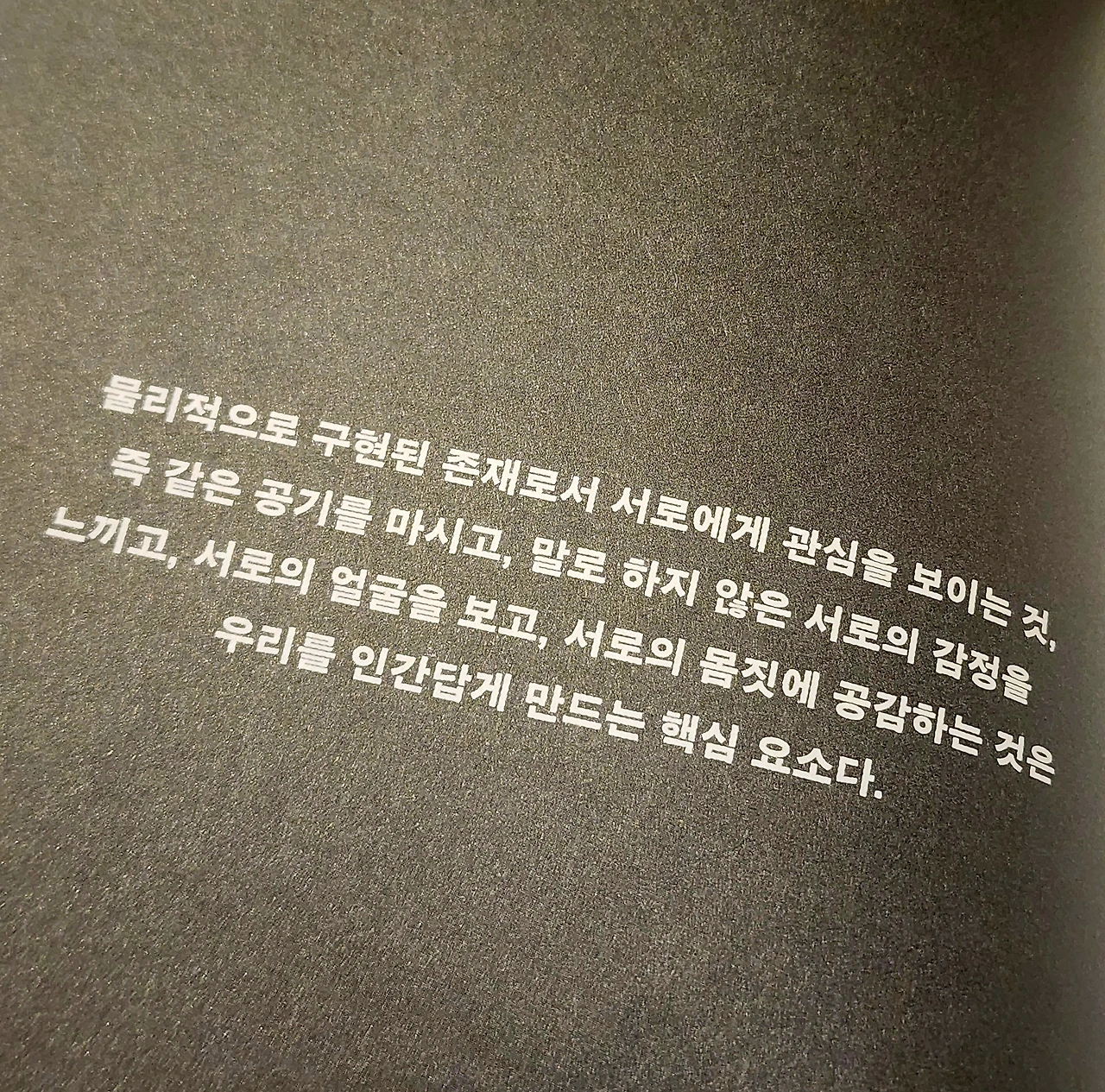 어느 주말 저녁, 십년지기 지인들과 도란도란 얘기를 나누며 휴대전화를 거의 보지 않았다. 딱히 공유할 관심사가 없다고 해도, 서로의 눈빛을 교환하며 온기를 나누는 것만으로도 충분하지 않을까.