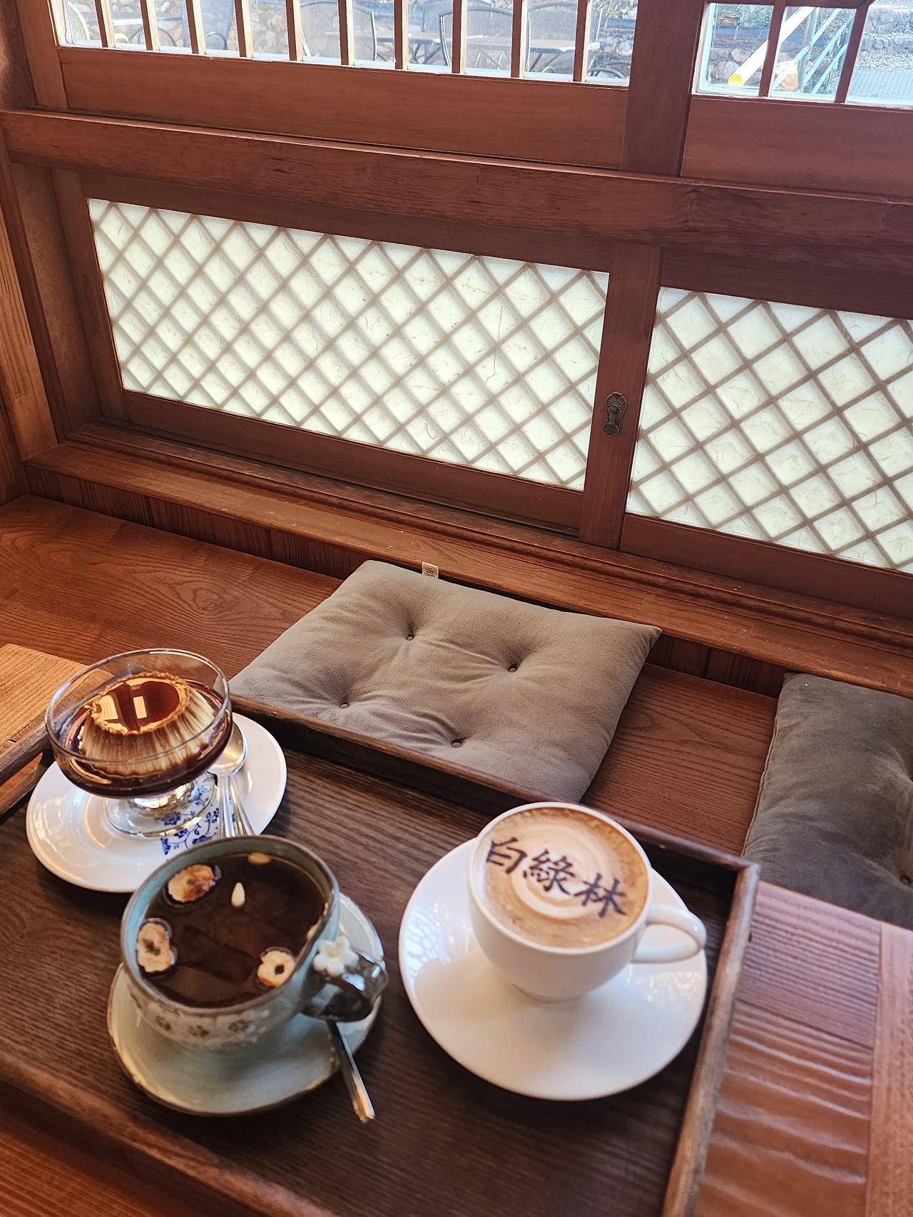 예전에 찜해둔 카페를 찾아 산길을 오르니 도자기 공원 옆에 한옥 건물이 보였다. 신발을 벗고 들어서니 생각보다 넓고 아늑했다.
