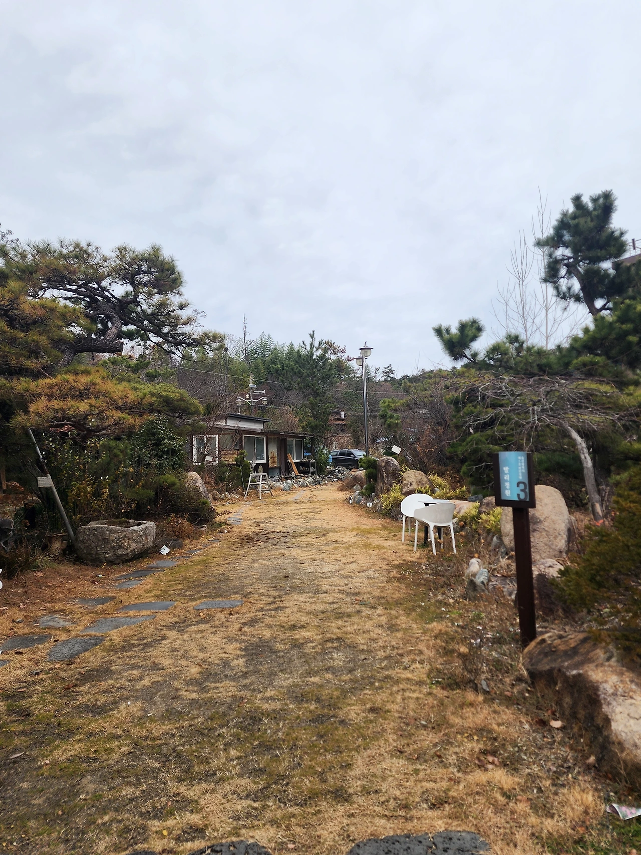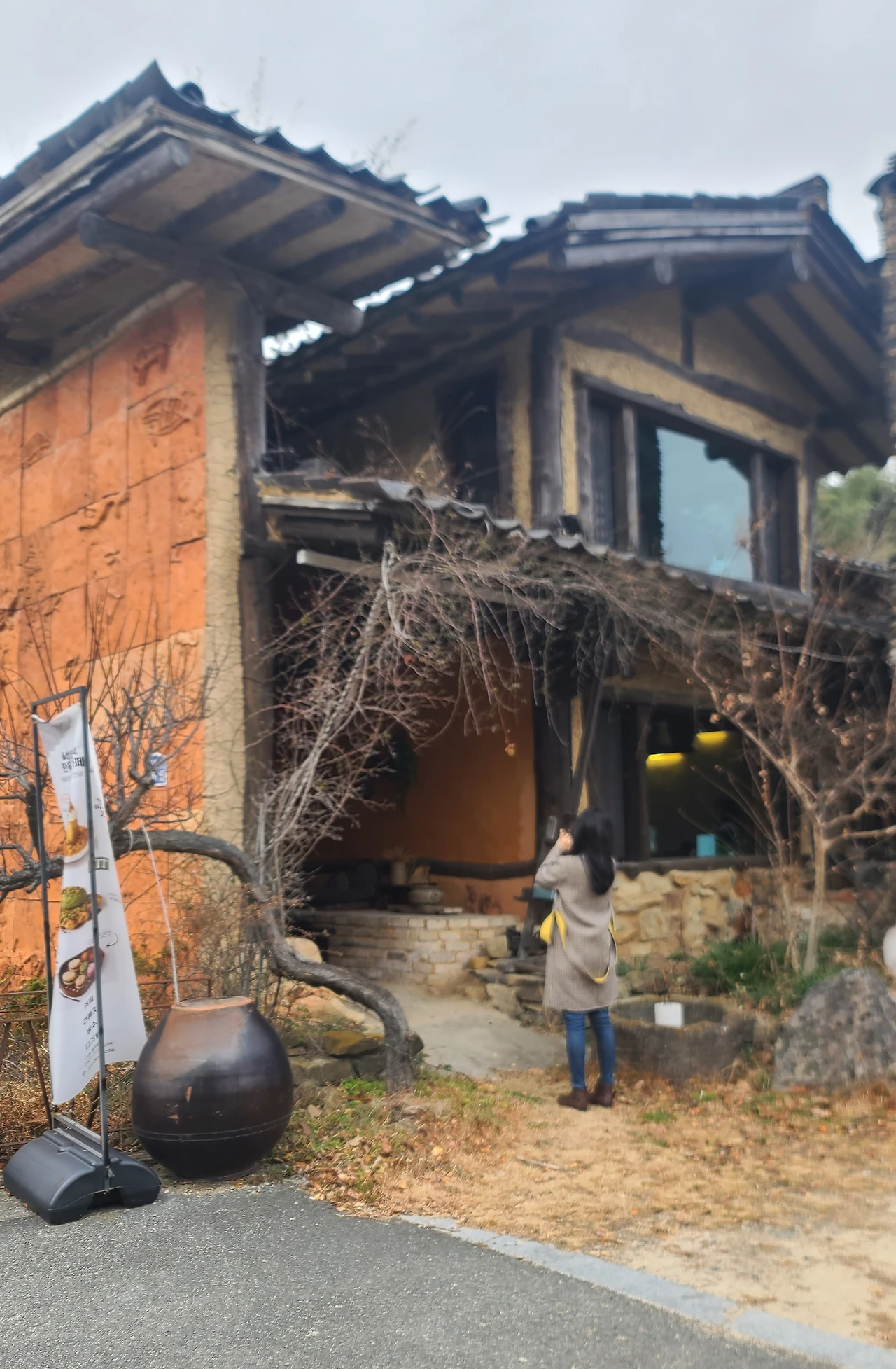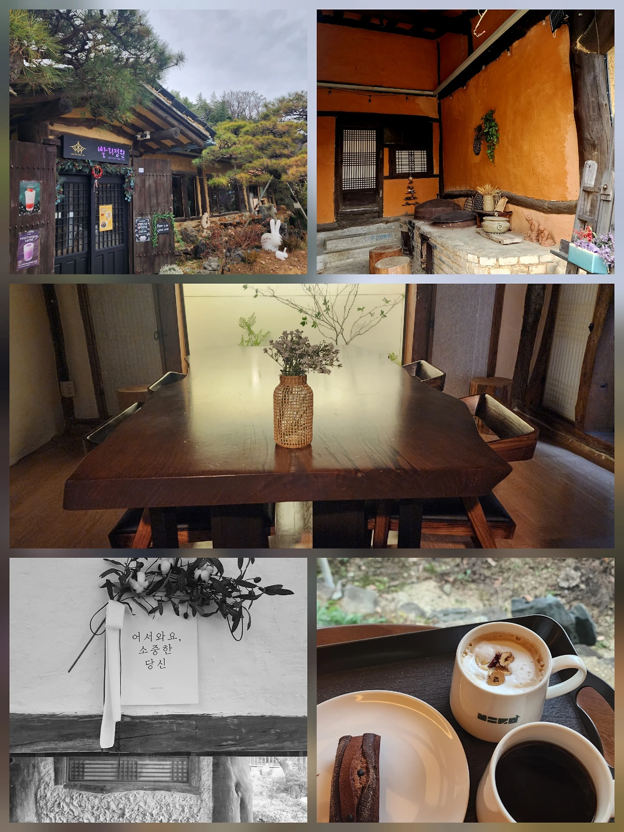 구불구불한 시골길을 달리니 산 중턱에 산장처럼 보이는 건물이 나왔다. 주차한 뒤 계단을 내려가니 한옥을 개조한 건물 입구가 보였다.