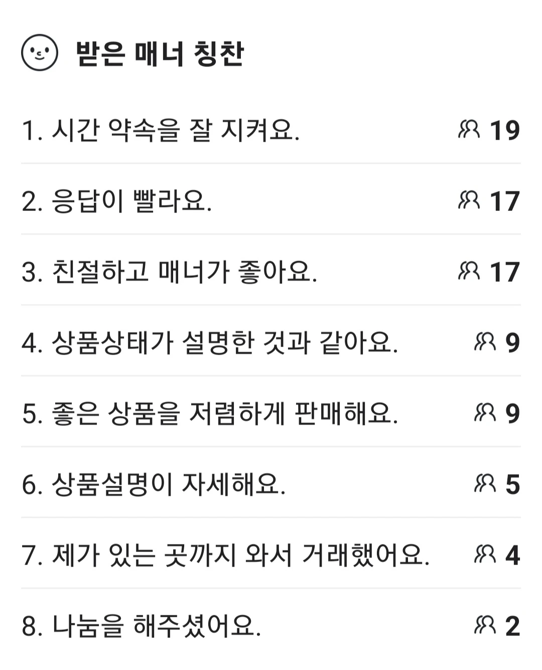 가끔 비매너 구매자들이 있어서 불쾌한 경험을 할 때도 있지만, 요즘엔 대체로 매너 구매자들이 많은 것 같다.