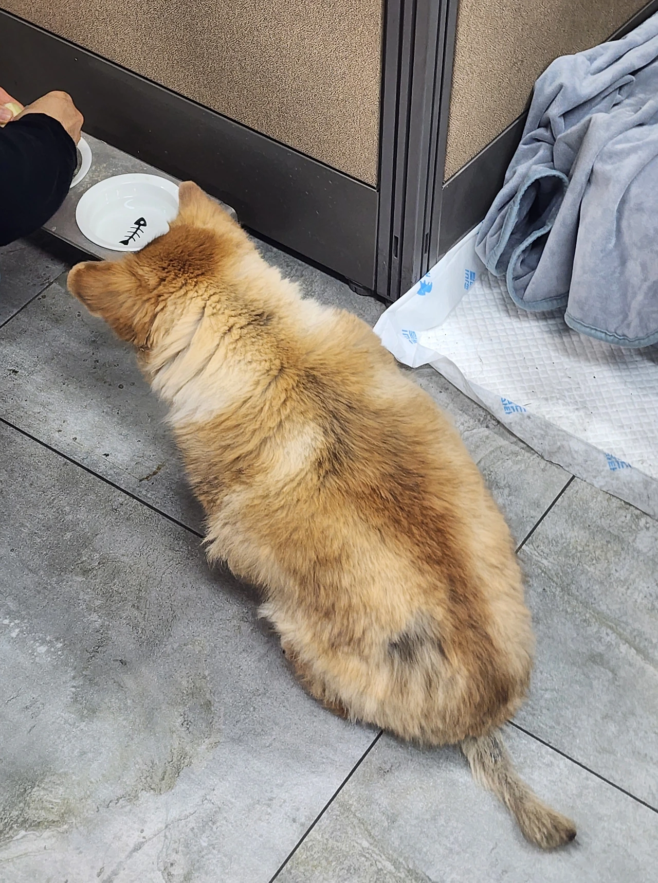이번에도 못 들은 척하며 고개를 돌리더니, 다른 직원들이 간식을 먹자 자기도 달라고 조른다. 하지만 간식은 어떤 행동에 대한 보상으로 주는 게 좋다고 해서 텀을 두고 조금씩 주고 있다.