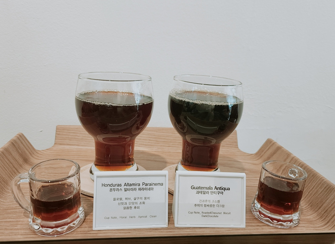 온두라스 알타미라 파라이네마: 플로랄, 허브, 살구 풍미, 신맛과 단맛의 조화, 깔끔한 애프터과테말라 안티구아: 견과류의 고소함, 다크초콜릿의 쌉싸름함