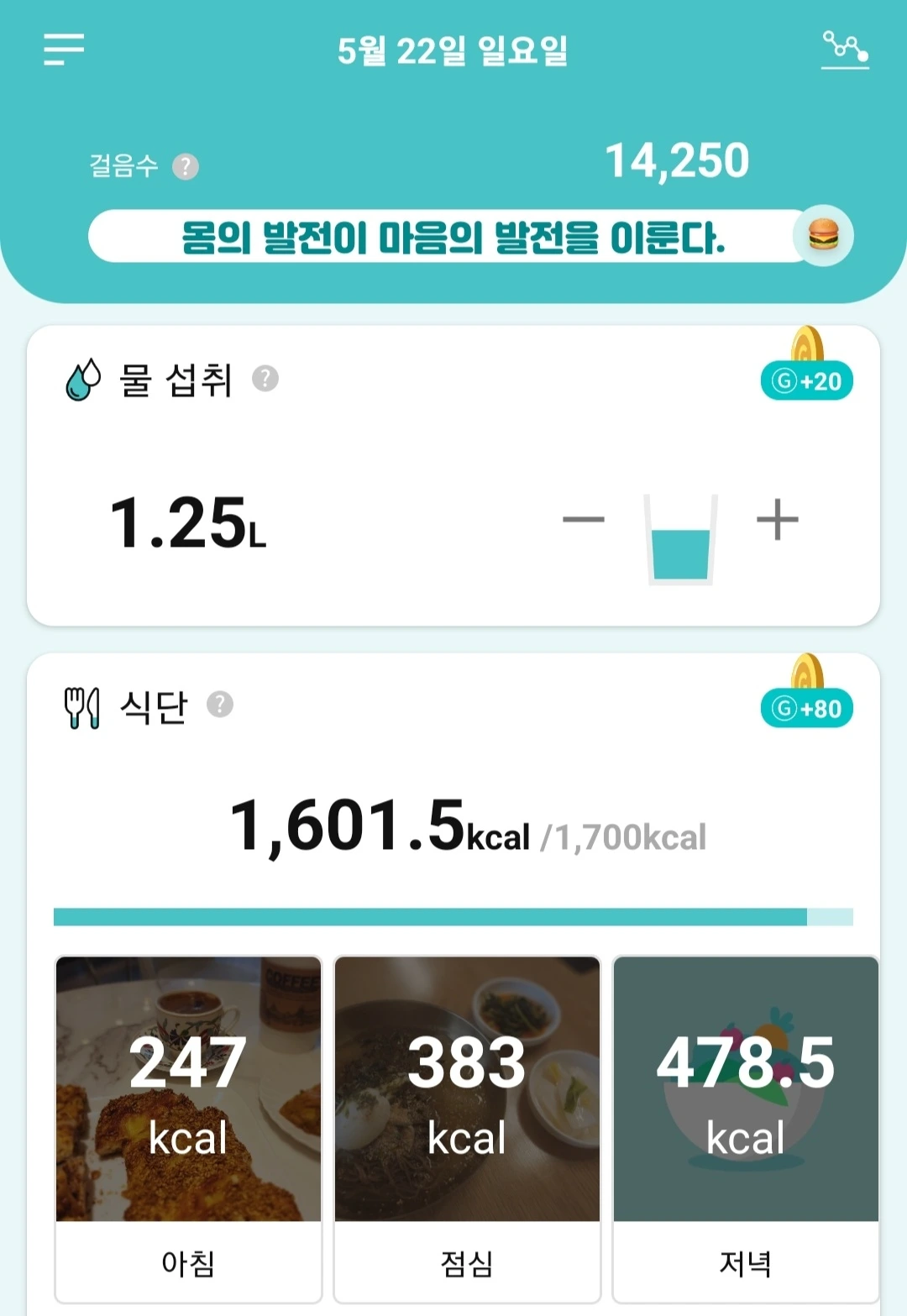 영양소 섭취는 골고루/하루 수분 섭취량은 1-1.5리터