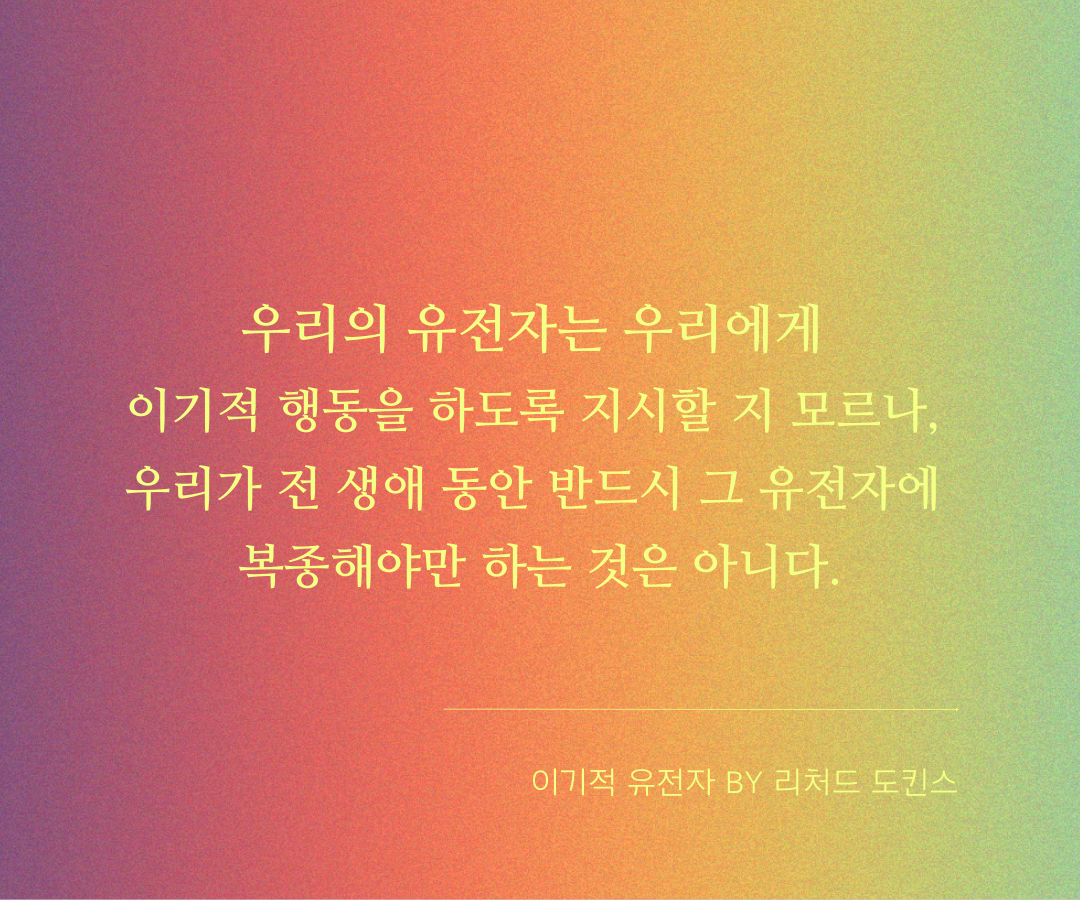 인간은 원래 이기적 유전자를 가지고 태어났으니 이기적으로 행동하는 것은 당연하다고 합리화하는