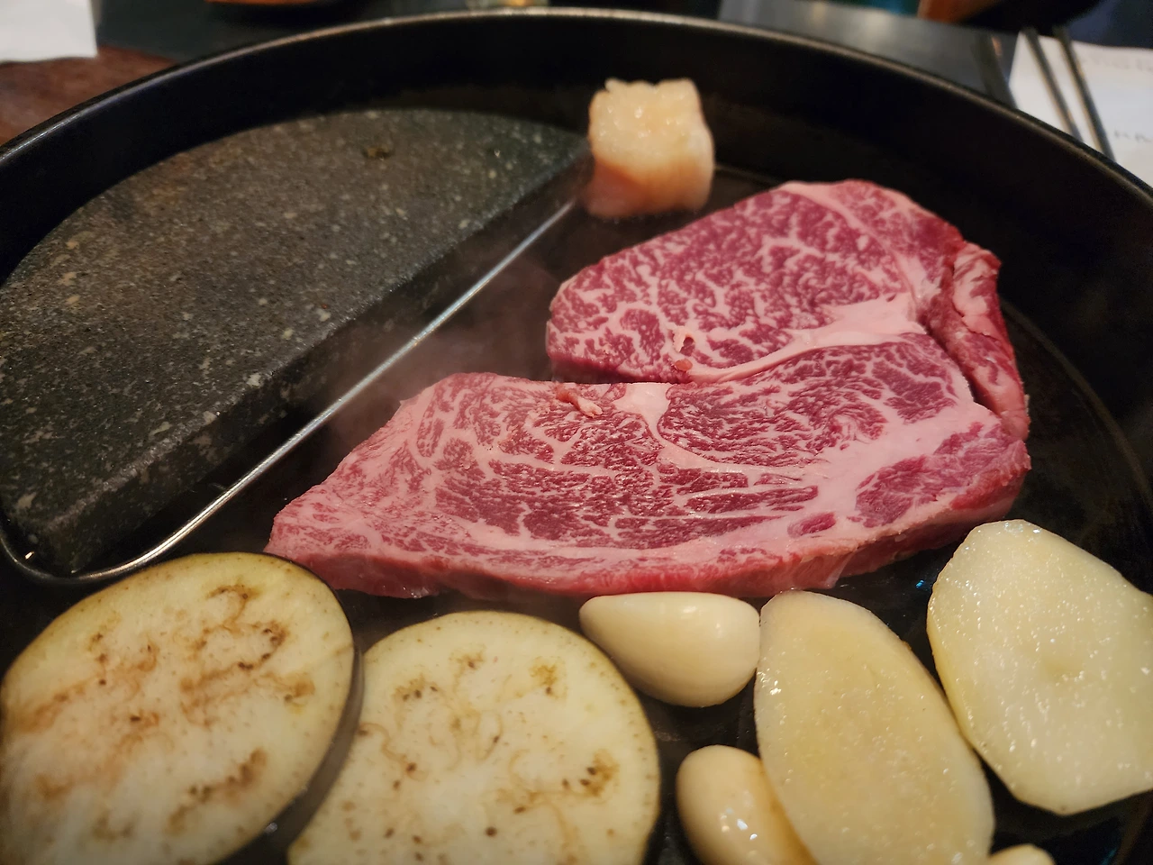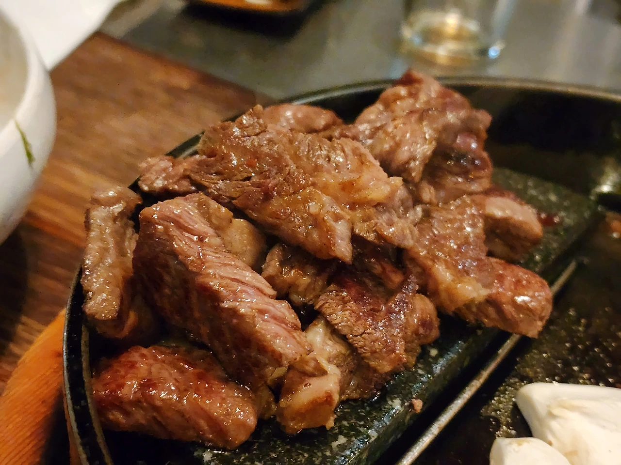 그렇게 8시쯤 되어서야 다 같이 모여 식사 시작. 음식점에서도 불꽃이 잘 보여 살짝 억울한 기분이 들었다.