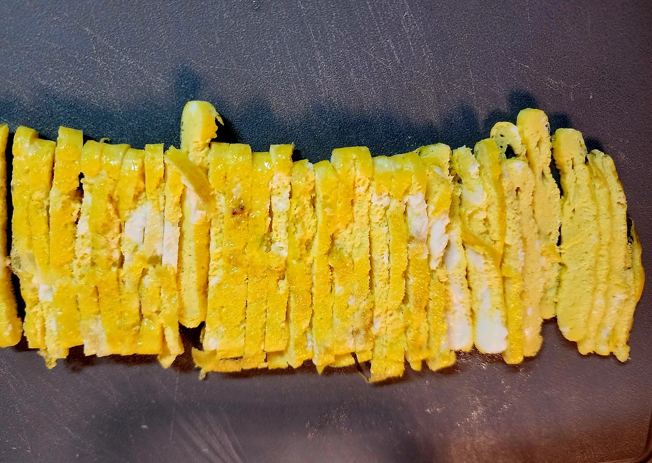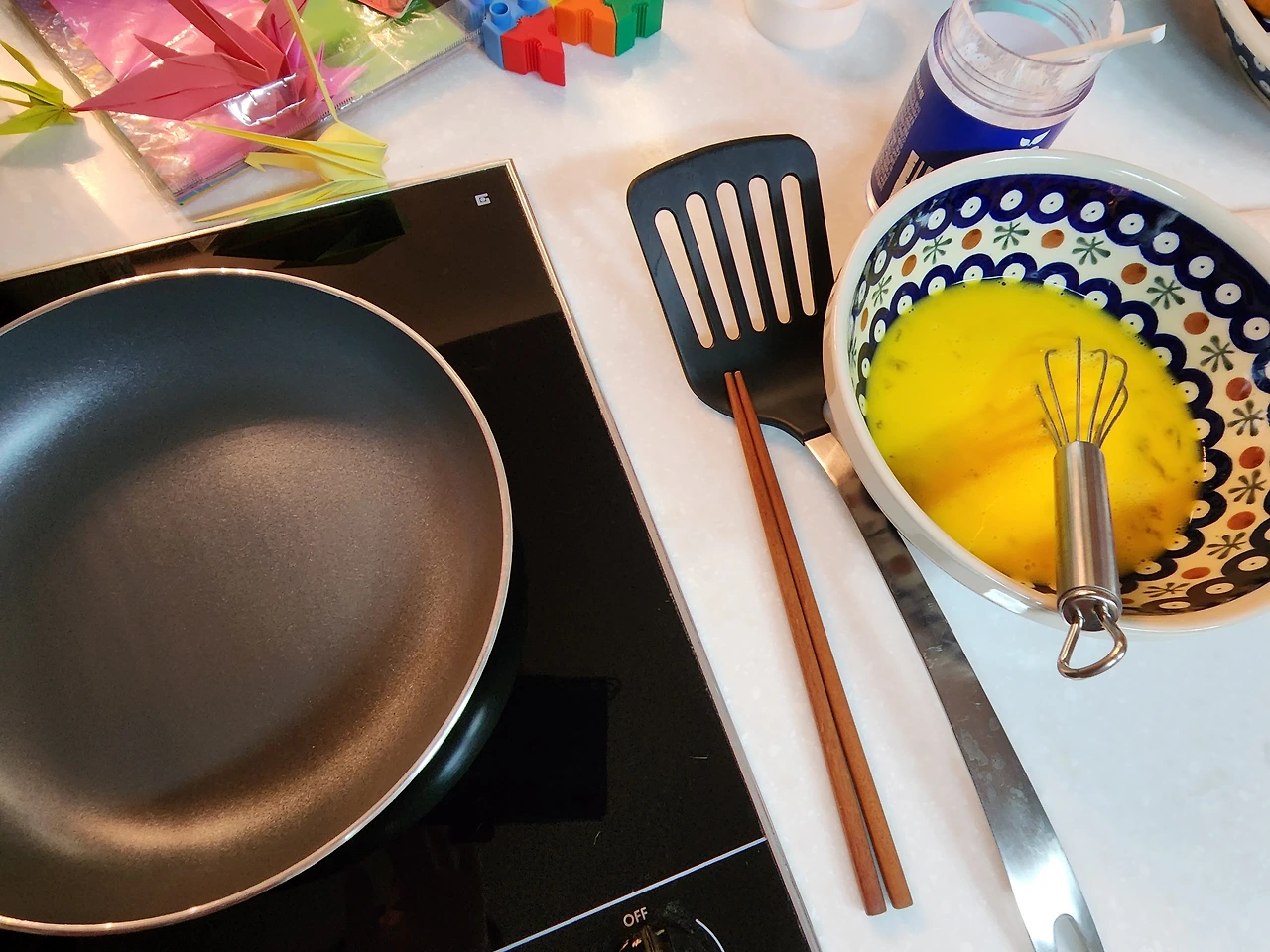 일찍 귀가한 아버지와 함께 식사하기 위해 엄마는 육수를 내고 난 달걀 고명을 만든다.