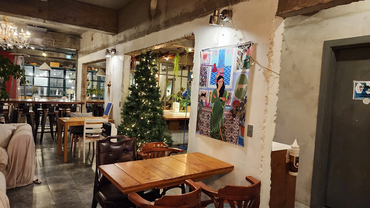 오랜만에 카페로 향하는 지름길. 그러나 쇠기둥으로 가로막혀 있어서 돌아가야만 했다. 불빛이 환하게 켜진 입구를 본 순간 왠지 마음이 편안해졌고, 우린 도란도란 많은 얘길 나누었다.