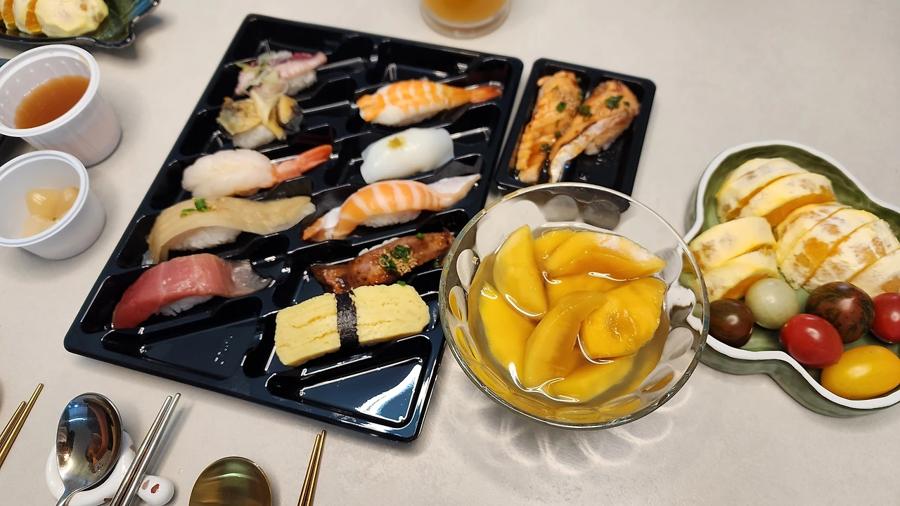 "점심 먹고 마트에서 장보고 초밥 포장해 가면 되겠네요."