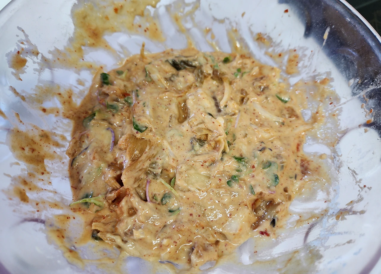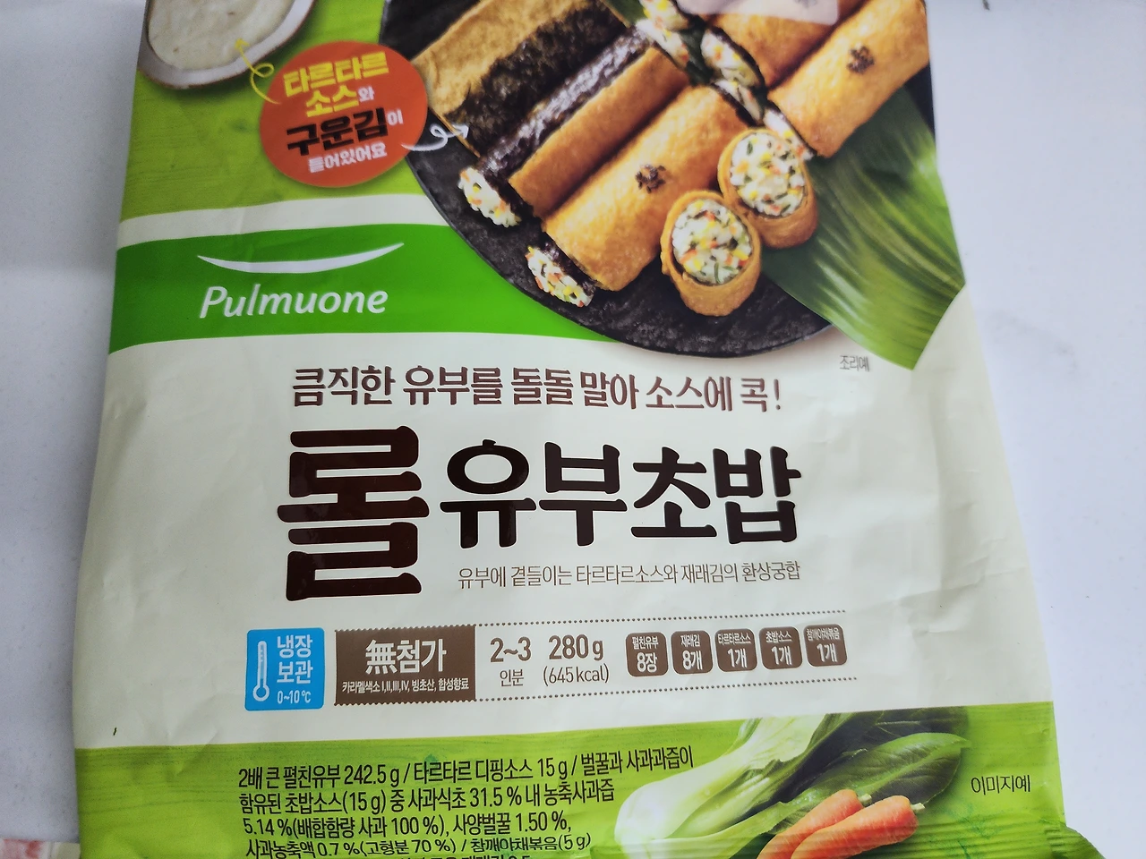 아까 과장님이랑 김치전 얘기했는데... 김장 김치랑 양파, 밀가루, 고추... 그리고 유부롤은 2-3인분용이니 절반쯤 계량하면 되겠다. 디저트는 그릭 요거트. 완벽해!!