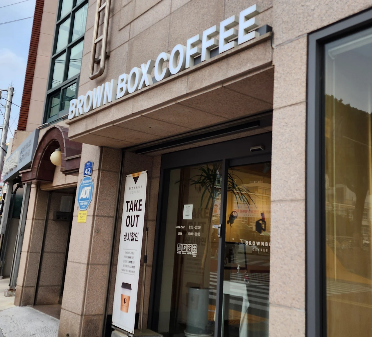 멍 때리다가 내릴 역을 지나치고 말았다. 갈아탄 뒤 당리약 1번 출구로 나온다. 전부터 가보고 싶었던 브라운박스 커피.