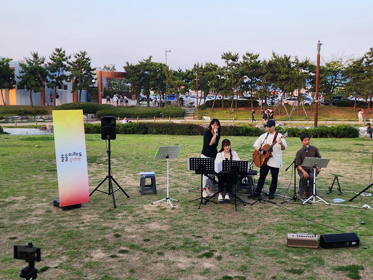 눈에 익은 인물들이 여럿 보여서 반가웠다. 이사한 뒤 인테리어 공사를 마치고 음악학원을 재오픈한 지인 부부는 학원 이름도 알릴 겸 버스킹을 준비했단다. 야외 행사라 변수가 많고 그만큼 챙길 것이 많을 텐데, 그들은 차분하게 행사를 진행했다.