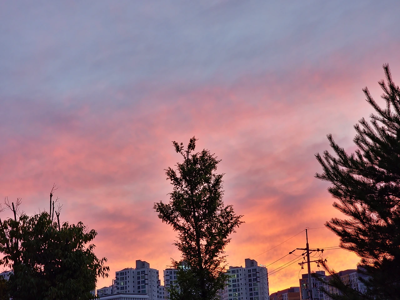 어느 저녁, 하늘을 쳐다보니 울긋불긋 그림 같았다. 그동안의 피로와 스트레스가 풍경 속으로 빨려 들어가는 기분이 들었다.