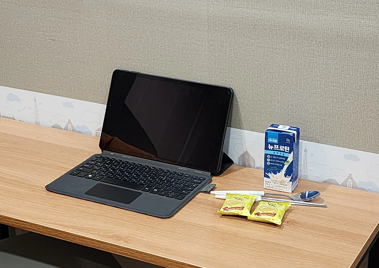 2시쯤 병원에 도착해서 신속항원검사를 비롯해 기본적인 절차를 마치고, 대기실에서 기다렸다. 세면도구 등 필요한 것들을 챙겨 왔는데, 정작 수저는 빠트렸다. 곧바로 건너편에 있는 다이소로 달려가 수저랑 간식을 사 왔다.