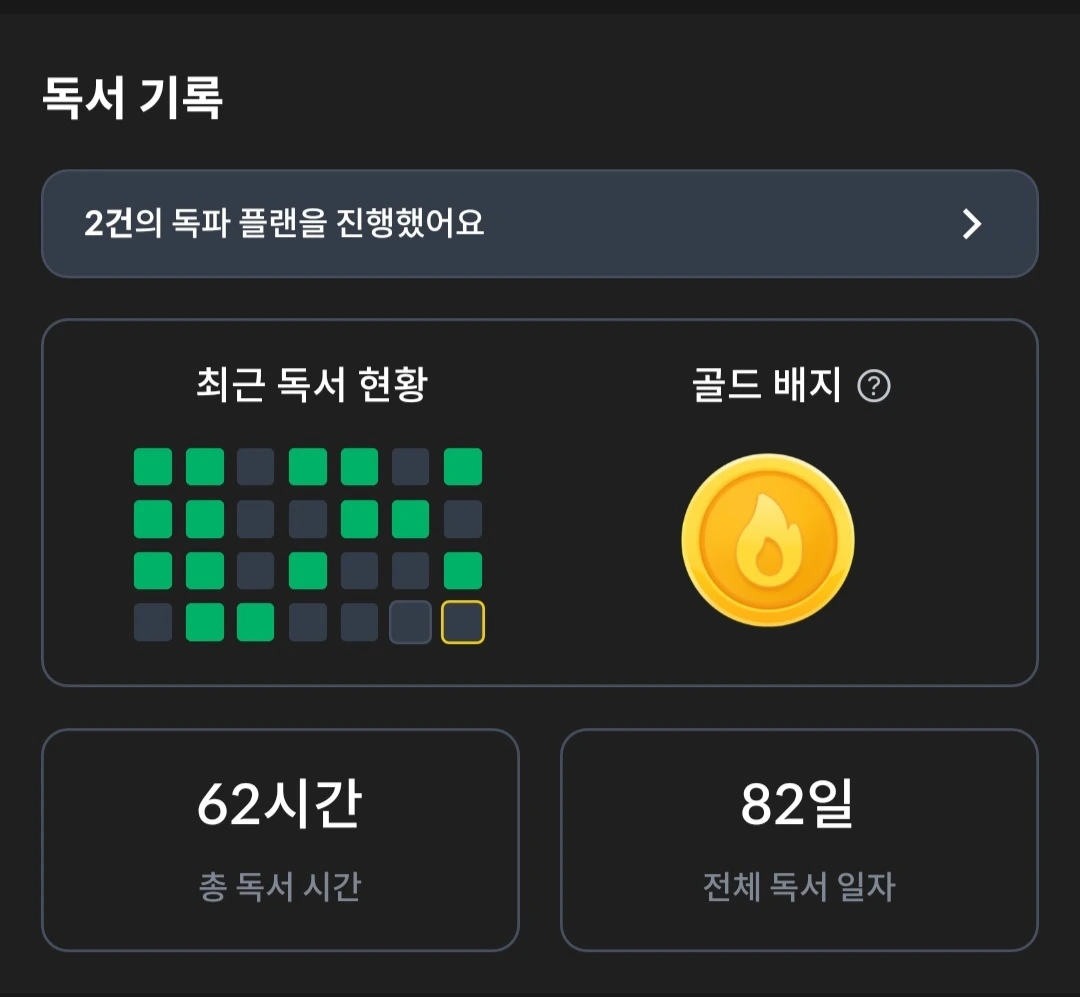 타이머로 독서시간을 기록하고 메모 및 리뷰를 남길 수 있다. 하루 평균 독서시간은 대략 45분. 한 달 독서량 5권 내외. 메모한 내용들을 바탕으로 브런치나 블로그에 리뷰도 꾸준히 올리고 있다.