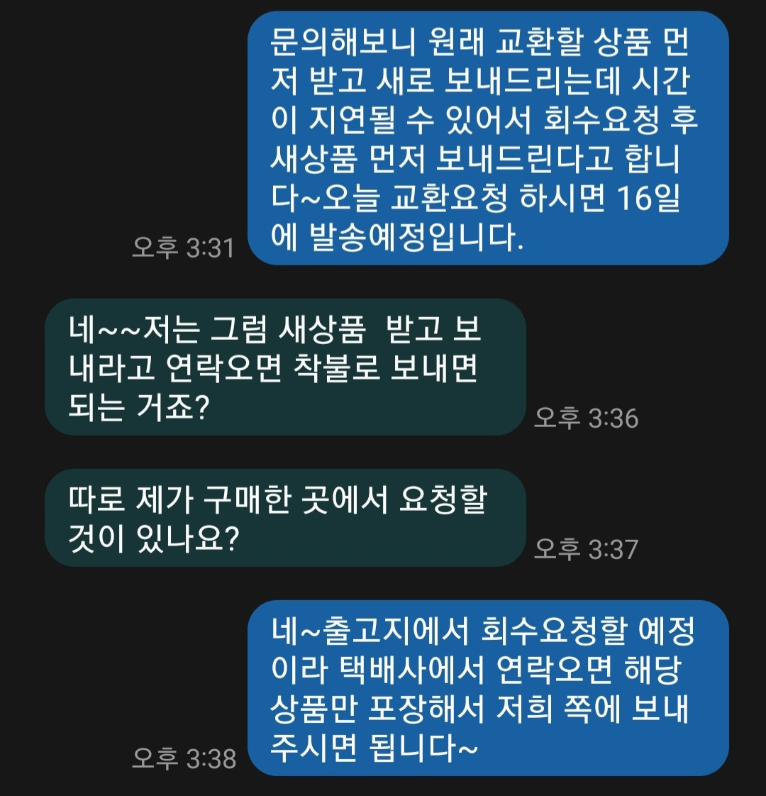 cs의 생명은 신속정확한 답변이다. 아무리 많은 상품을 팔아도 배송이 잘못되거나 cs를 원활하게 처리하지 못하면 매출에도 영향을 줄 수 있다고 배웠다.