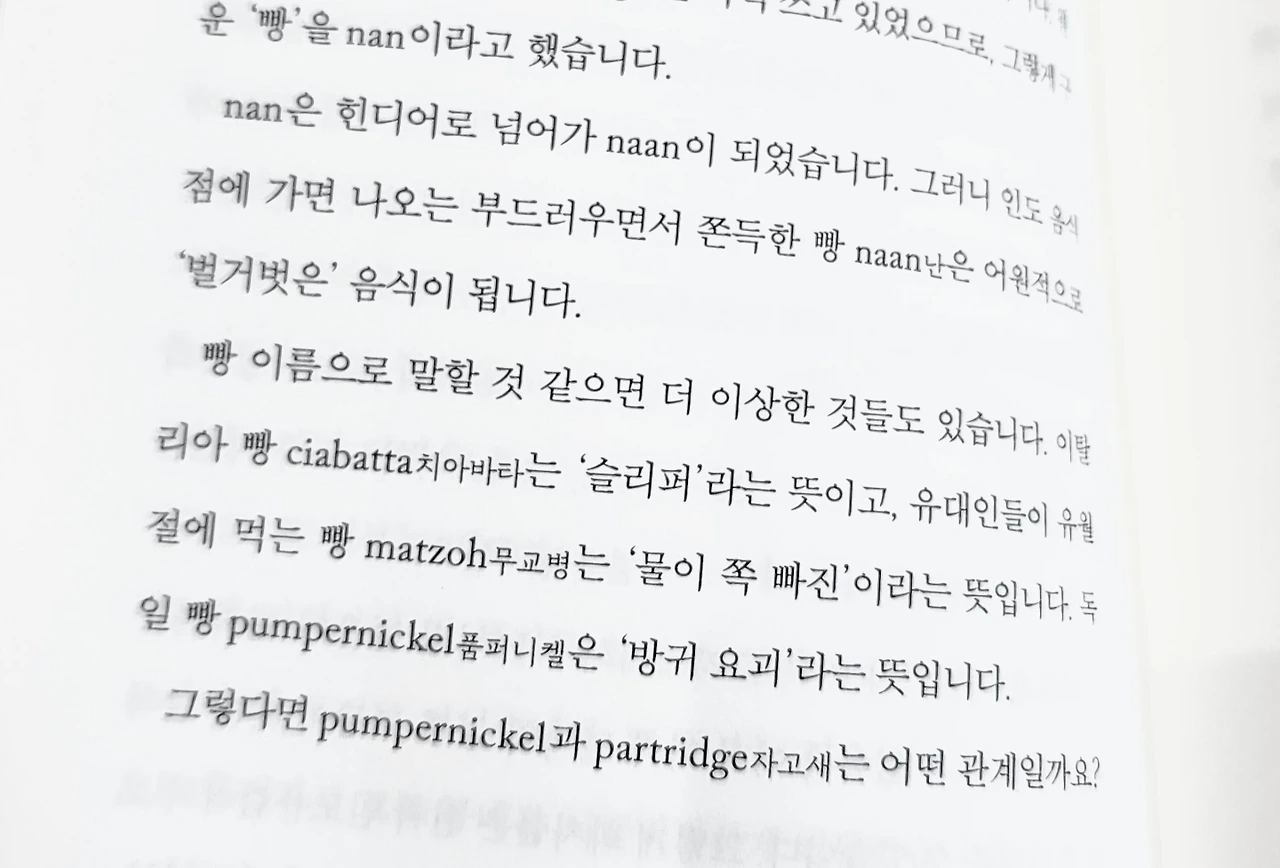 "이탈리아 빵 포카치아가 '슬리퍼'라는 뜻이고, 인도식 난은 '벌거벗은'이라는 뜻이래요."