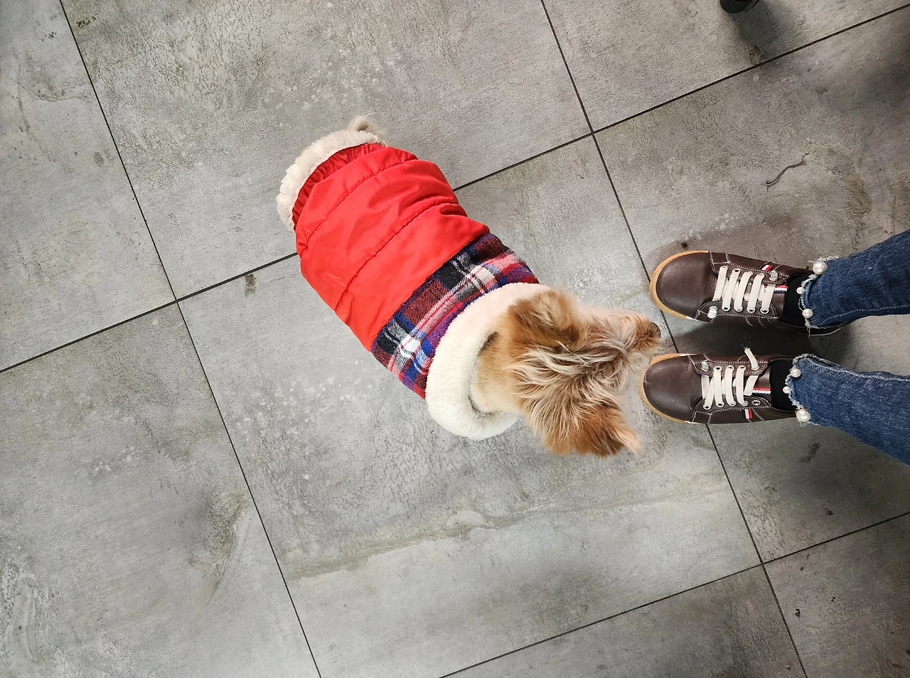 옷도 입고 줄에 묶여 있는 걸 보니 주인이 따로 있는 것 같다. 컨테이너 건물 옆, 허름한 곳에서 혼자 지내는 녀석이 마음에 걸렸고, 지나다 우연히 발견하고는 일주일에 한두 번 간식을 챙겨주고 있다.