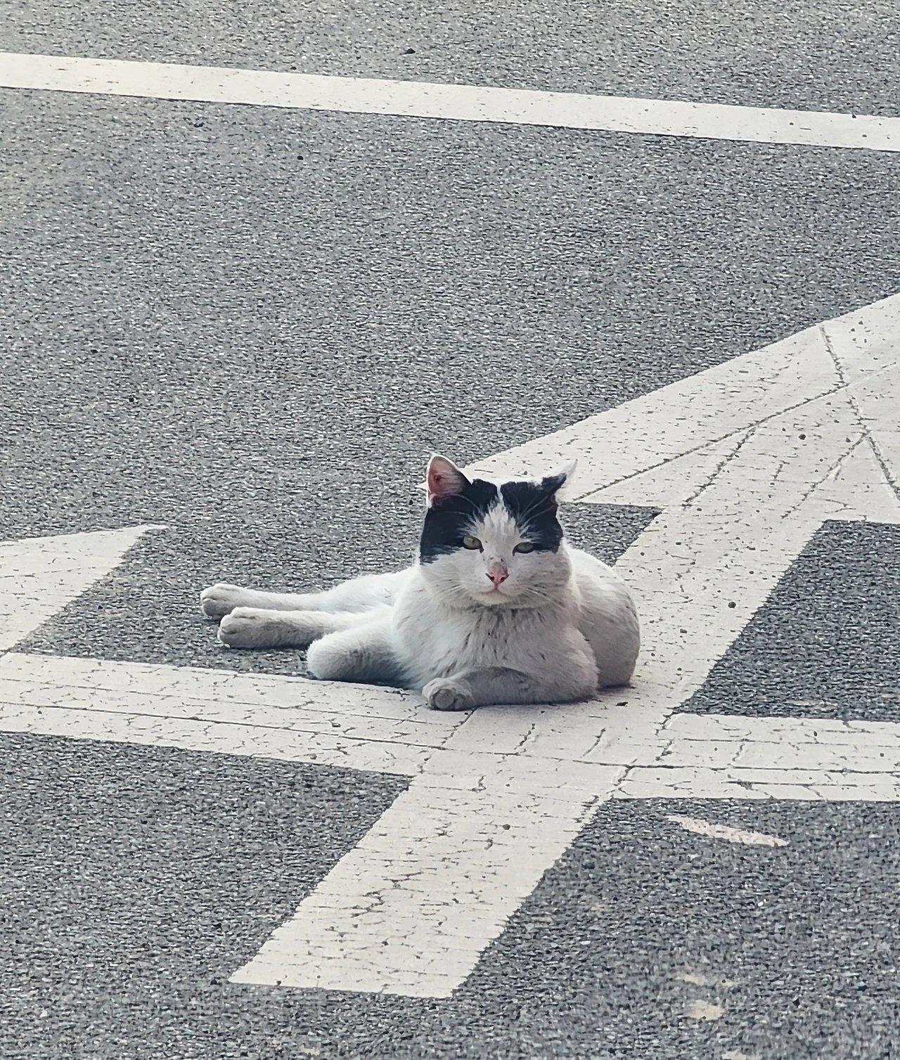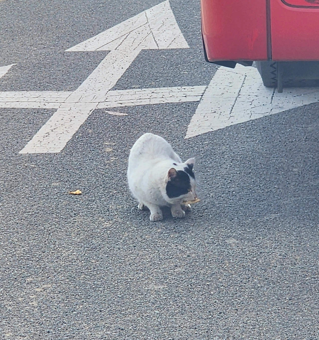 점심 먹고 외출하기 위해 자가용에 타니 도로 가운데에 고양이가 떡 하니 버티고 있었다.