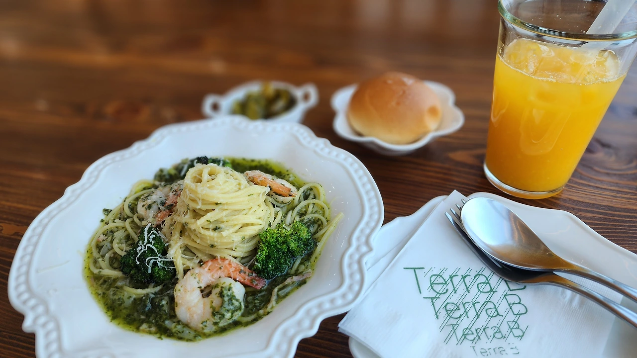 맵찔이라 설마 하는 심정으로 물었는데, 내겐 약간 매운 정도가 아니었던 것이다. 바질오일 파스타와 오렌지 주스를 주문한 뒤 잠시 한숨을 돌렸다.