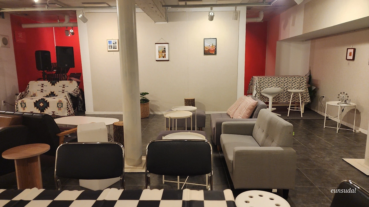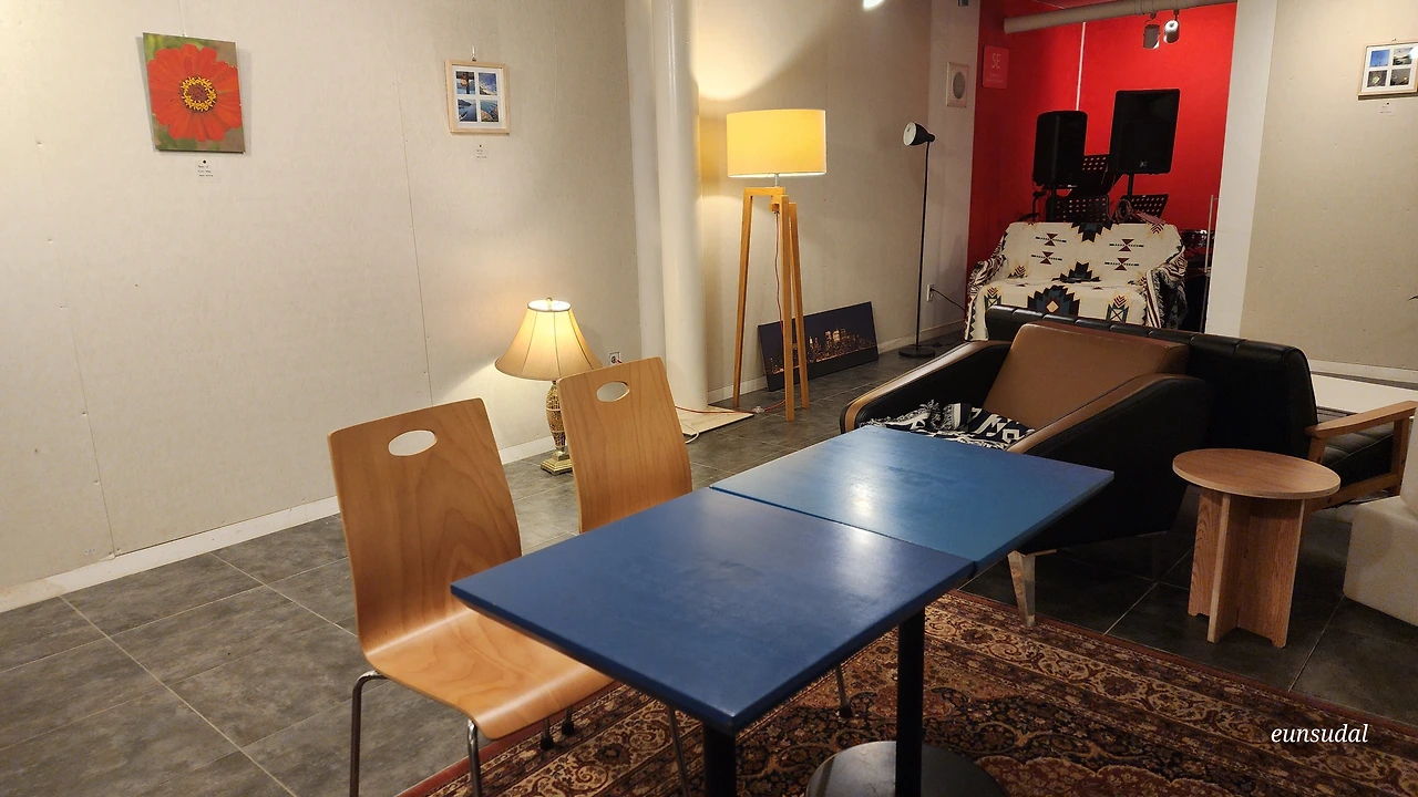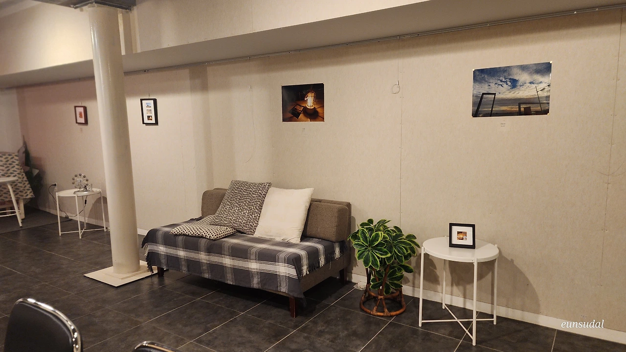 "전시 준비도 만만치 않네요. 의자랑 테이블을 다 놓으면 복잡하니까 동선 고려해서 적당히 놓을까요?"