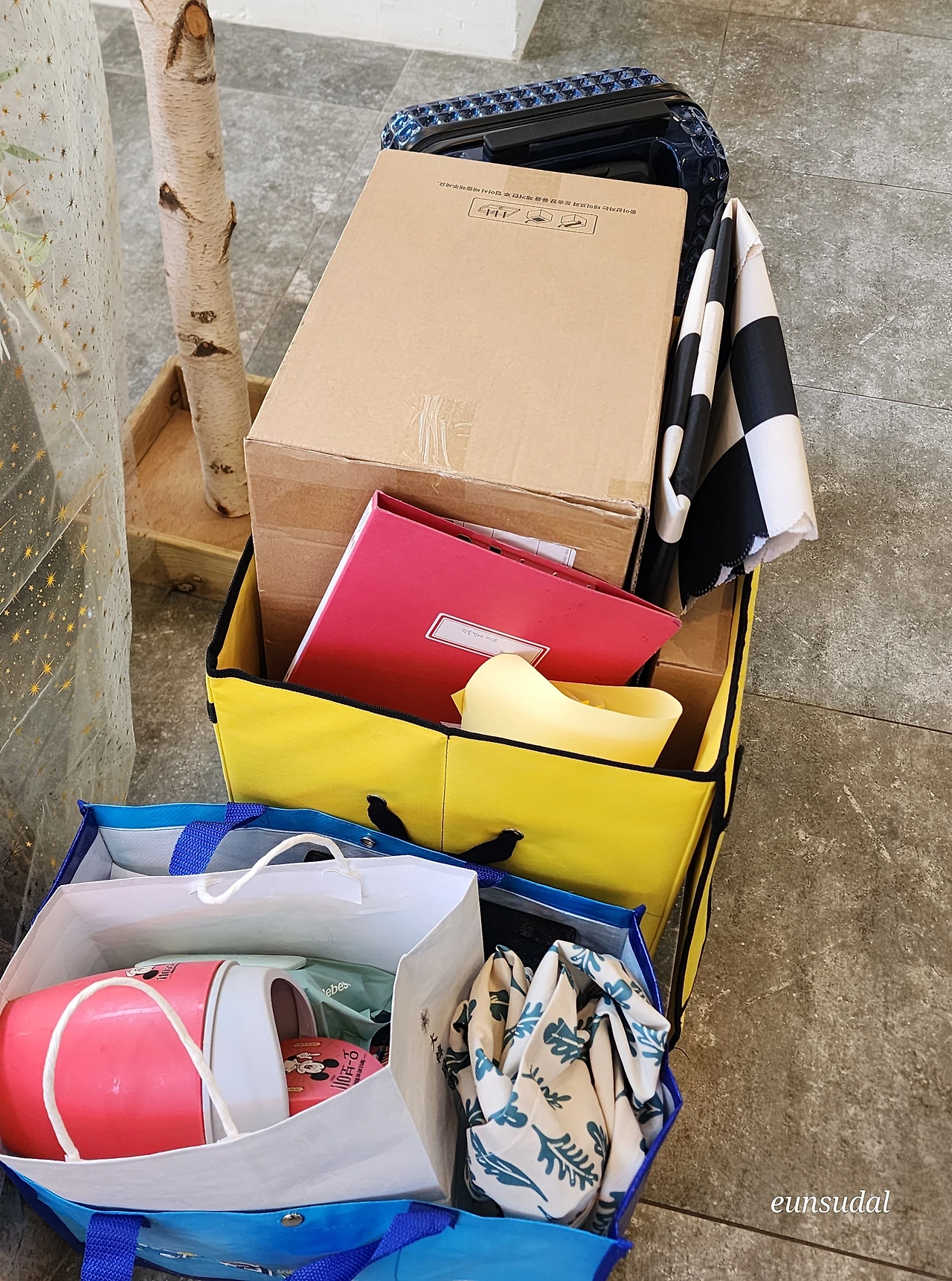 작품 개수가 그리 많지 않은데도 캐리어부터 에코백, 택배함까지 총동원해야만 했다. 지인들한테 판매하기로 한 작품은 따로 보관하고, 남은 액자나 포스터 등은 나중에 선물하거나 사은품으로 쓰기로 했다.