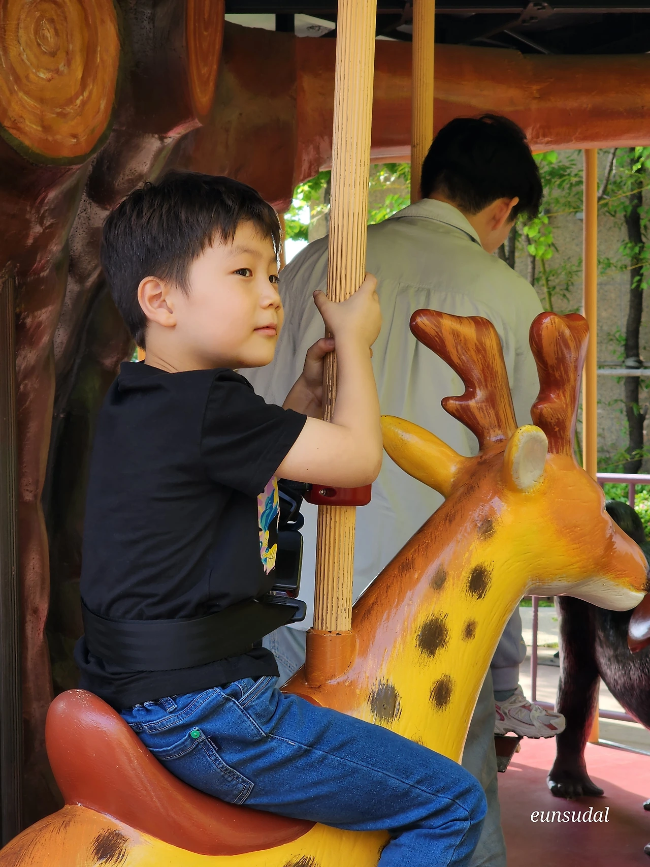 어머니가 옷을 고를 동안 난 막둥이를 데리고 9층 놀이동산으로 향했다. 마침 회전목마를 운영하고 있어서 기다렸다 조카를 태워주었다.