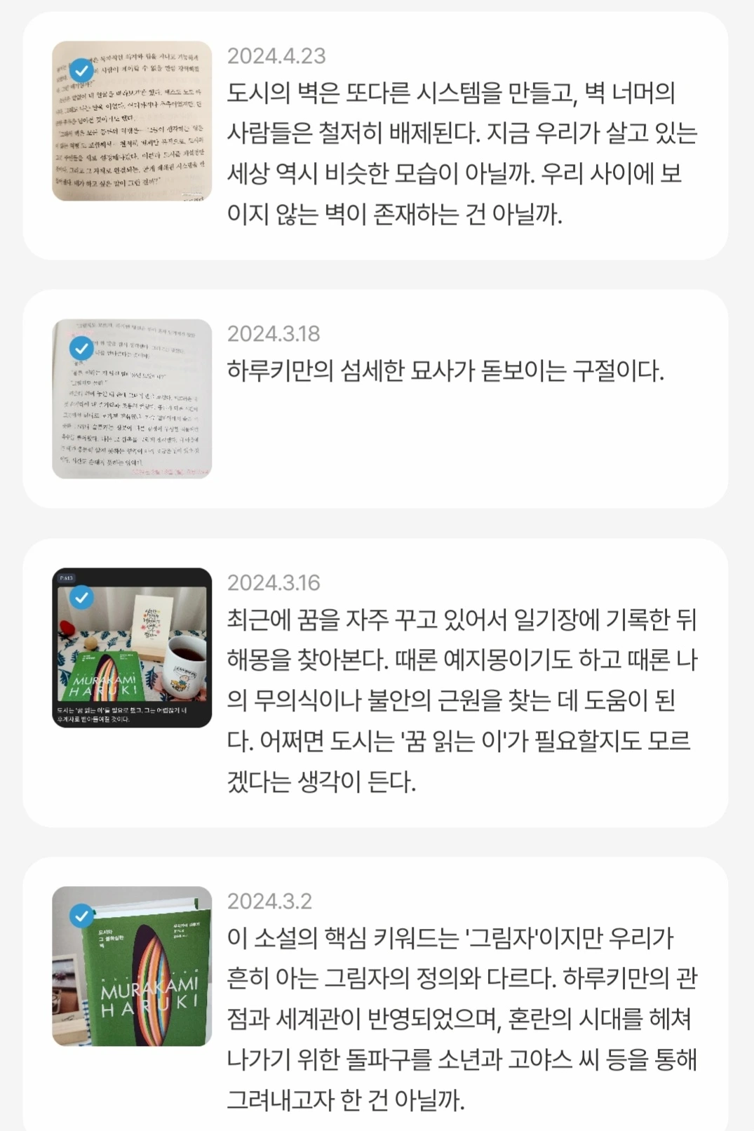 코로나 시절, 다 같이 모여서 글쓰기가 어려운 환경을 고려해 온라인 글쓰기를 진행한 적이 있다. 매일 키워드를 제시하면 각자 게시판에 글을 써서 인증하는 방식이었는데, 생각보다 반응이 좋았다. 며칠 전엔 독서모임에서 운영 중인 '독서&글쓰기 동아리'에 참여했다. 혼자 쓰는 것보단 역시 같이 쓸 때 자극도 되고 좋은 것 같다.