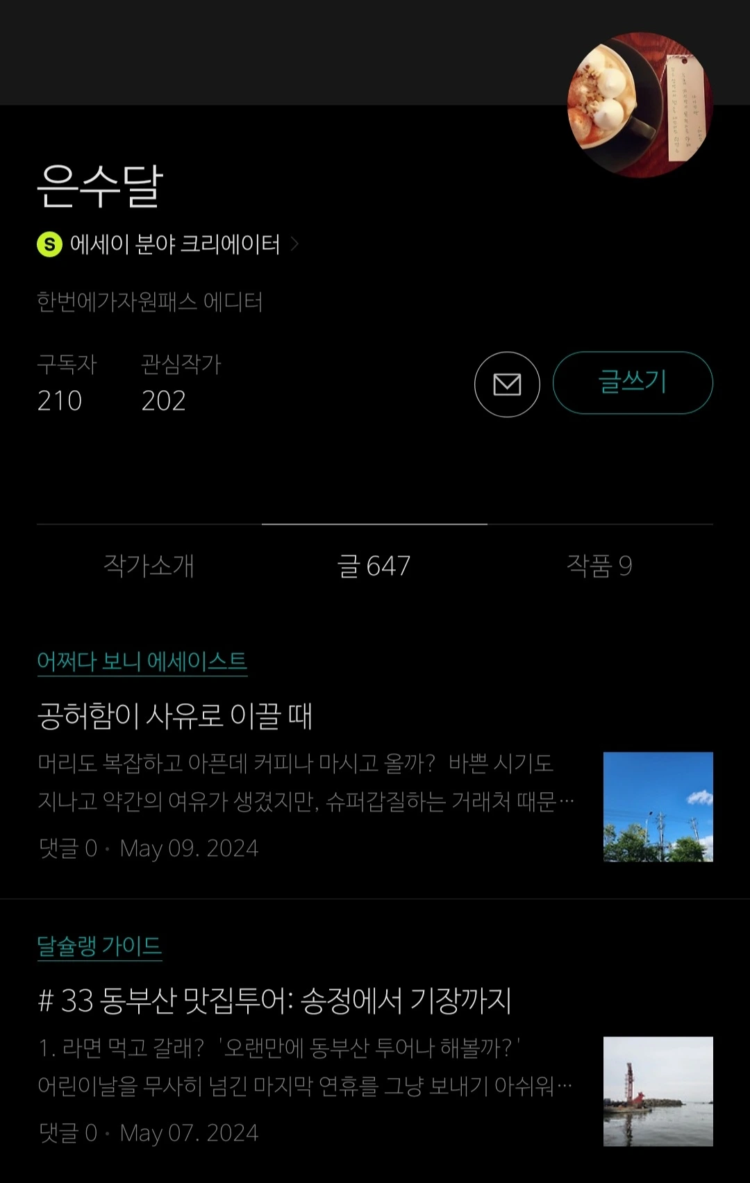 어릴 적부터 독서광이었지만 내가 무엇을 원하는지 찾는 데는 시간이 좀 걸렸다. 그리고 여전히 길을 찾아가는 중이다. 하지만 끊임없이 고민하면서 새로운 걸 경험하는데 주저하지 않는 성향은 크고 작은 성과를 만들어냈다. 블로그에서 시작해 유튜브 채널, 오디오클립, 그리고 브런치 스토리. 한두 가지 분야에 집중하면서 다양한 채널 통해 나를 알린 덕분이었다.