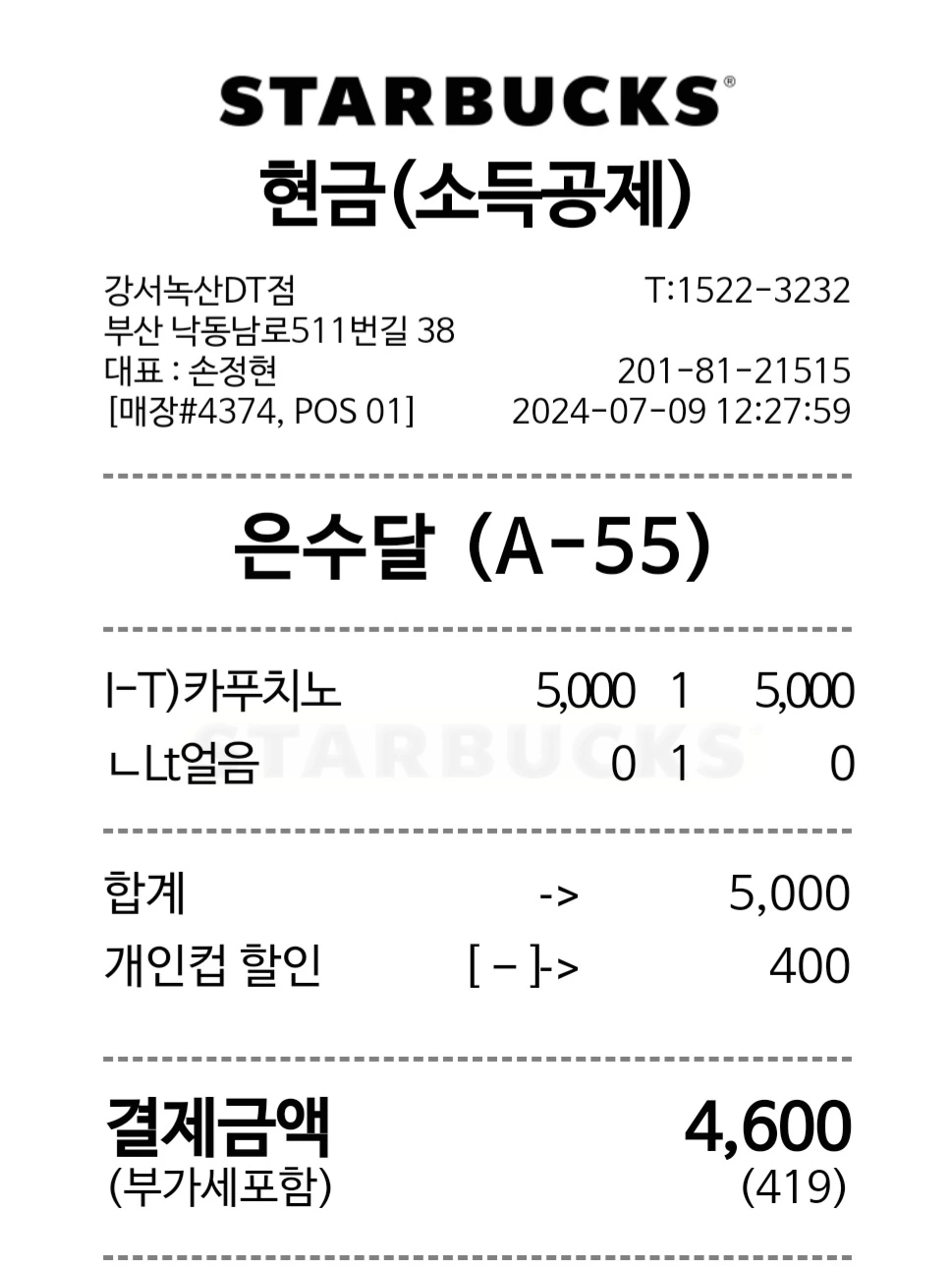 텀블러를 챙겨 온 덕분에 400원 할인받고, 별 12개 적립해서 쿠폰도 생겼다.