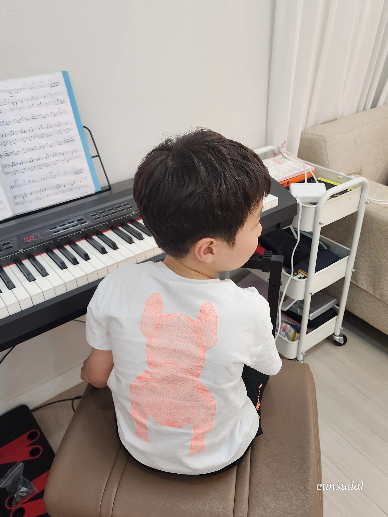 우량아로 태어나 이유식도 빨리 떼고 발육 상태도 남달랐던 녀석은 유치원에 가더니 제법 의젓해졌다. 어른도 힘들어하는 뮤지컬 공연을 힘든 내색 없이 꿋꿋하게 해낸 걸 보면 배우로서의 자질이 다분한 것 같다. 거기다 사람들의 관심을 받으면 평소보다 몇 배로 흥분하는, 슈퍼관종이다.
