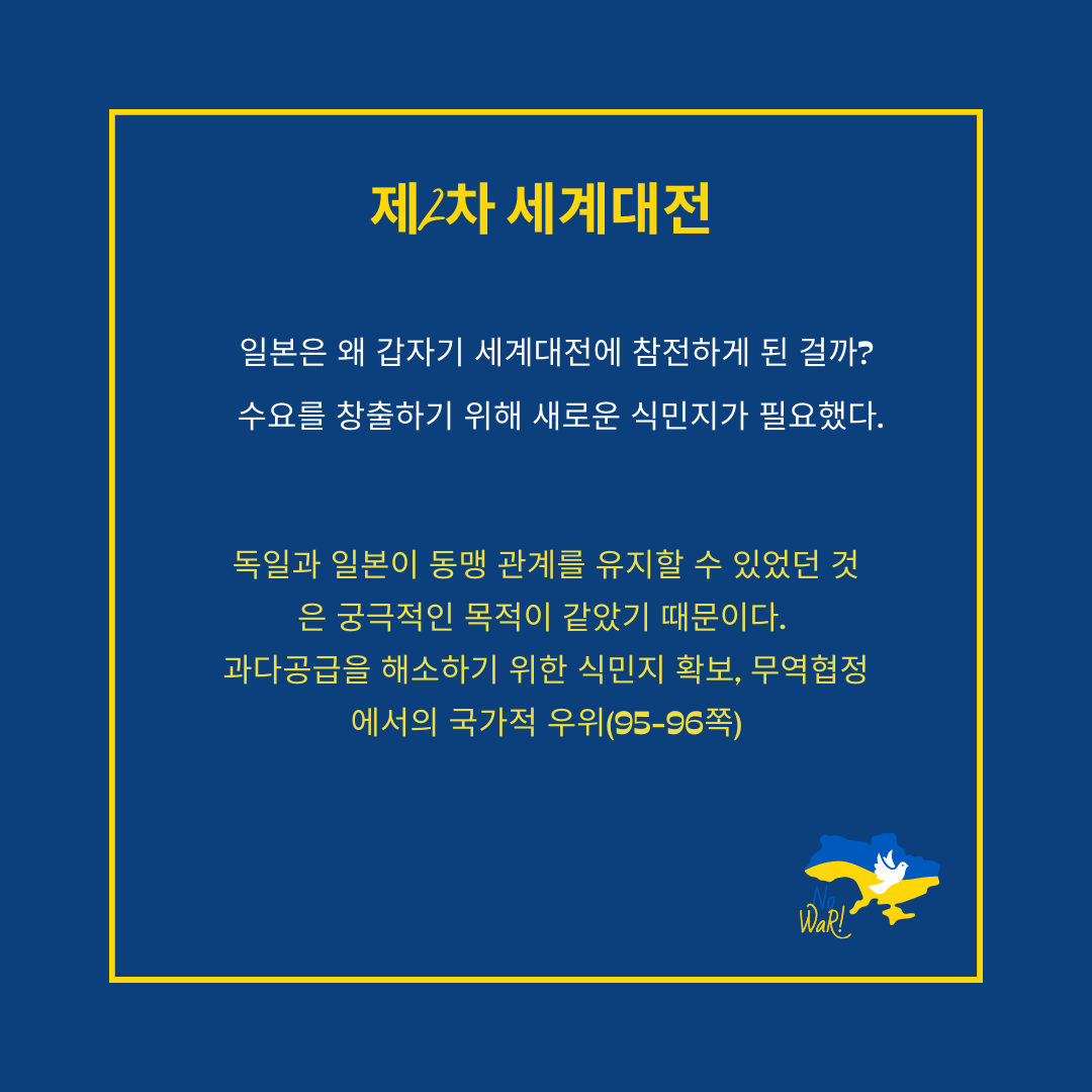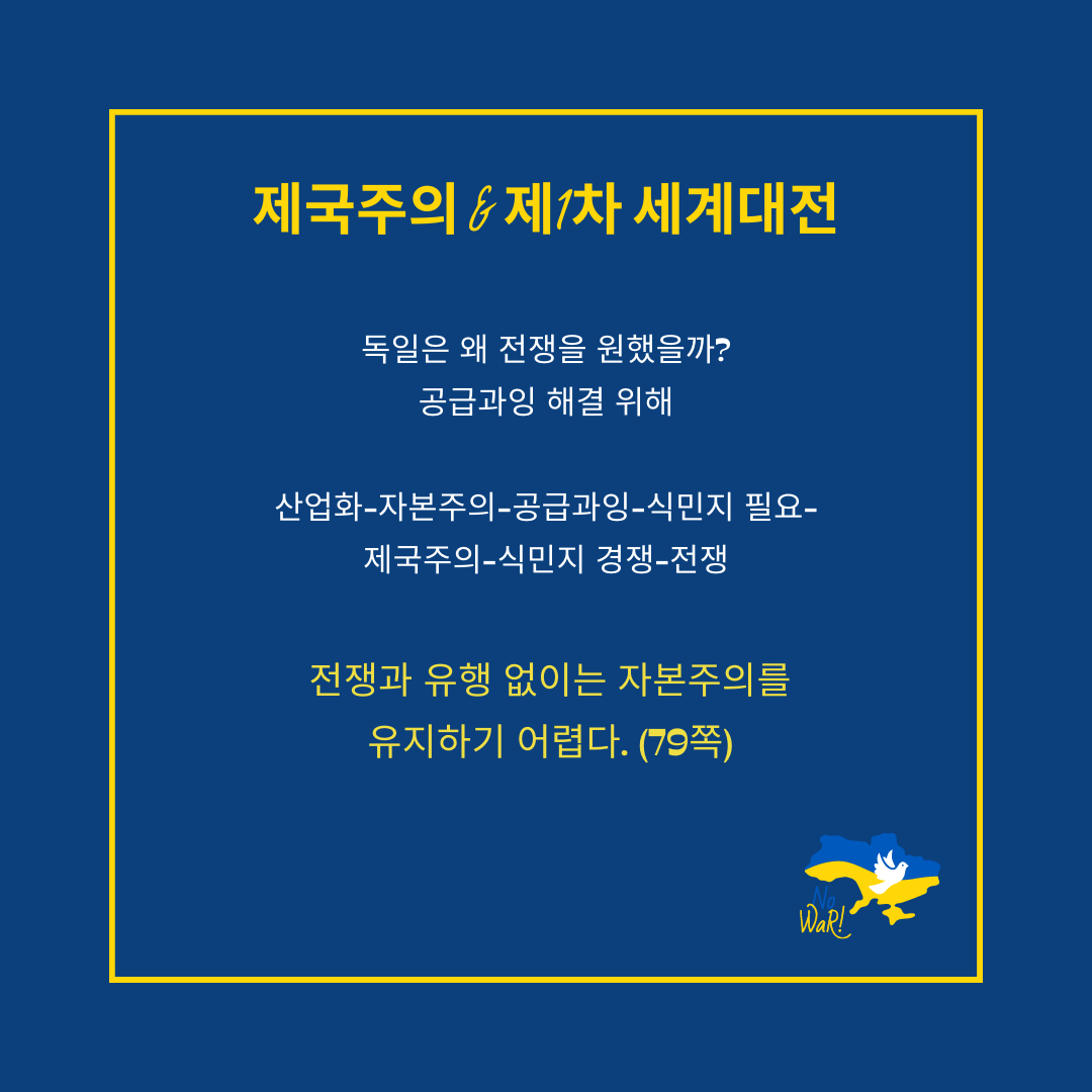 '전쟁과 유행 없이는 자본주의를 유지하기 어렵다.'라는 말처럼, 두 가지는 자본주의의 필수 요소인 것 같다. 얼마 전에도 우크라이나 전쟁으로 인해 전 세계가 떠들썩했는데, 세계사의 흐름을 미리 익혀두면 국제 정세를 이해하는 데 도움이 많이 된다.
