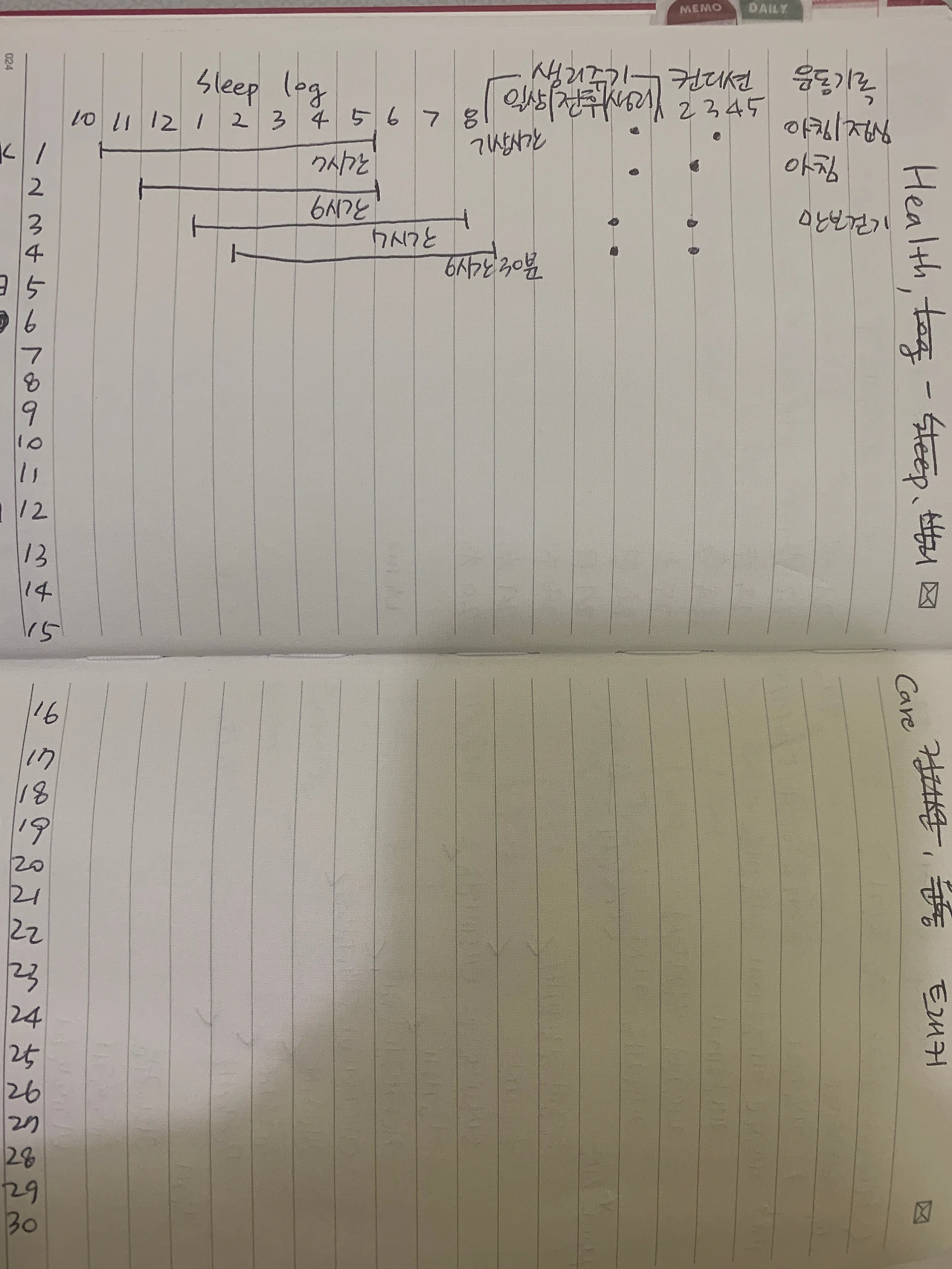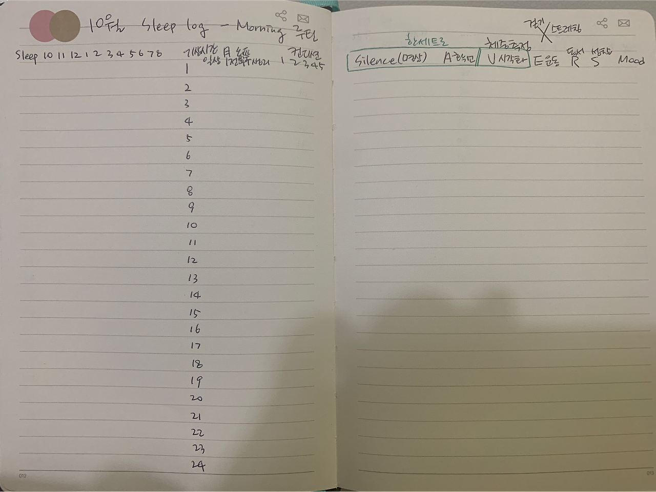 나도 사실은 평일 풀타임 출근 시간에는 불렛저널의 컬렉션 페이지를 꾸릴 시간이 전혀 없기 때문에 이 부분은 가볍게 포기하고, 대신 사무실에 출근해서 업무 일정을 데일리로그에 정리하면서 슬립로그나 헬스트래커를 체크하는 것으로 갈음한다. 대신 이 모든 것을 보완하는 방법으로 음성녹음을 시도하고 있다.