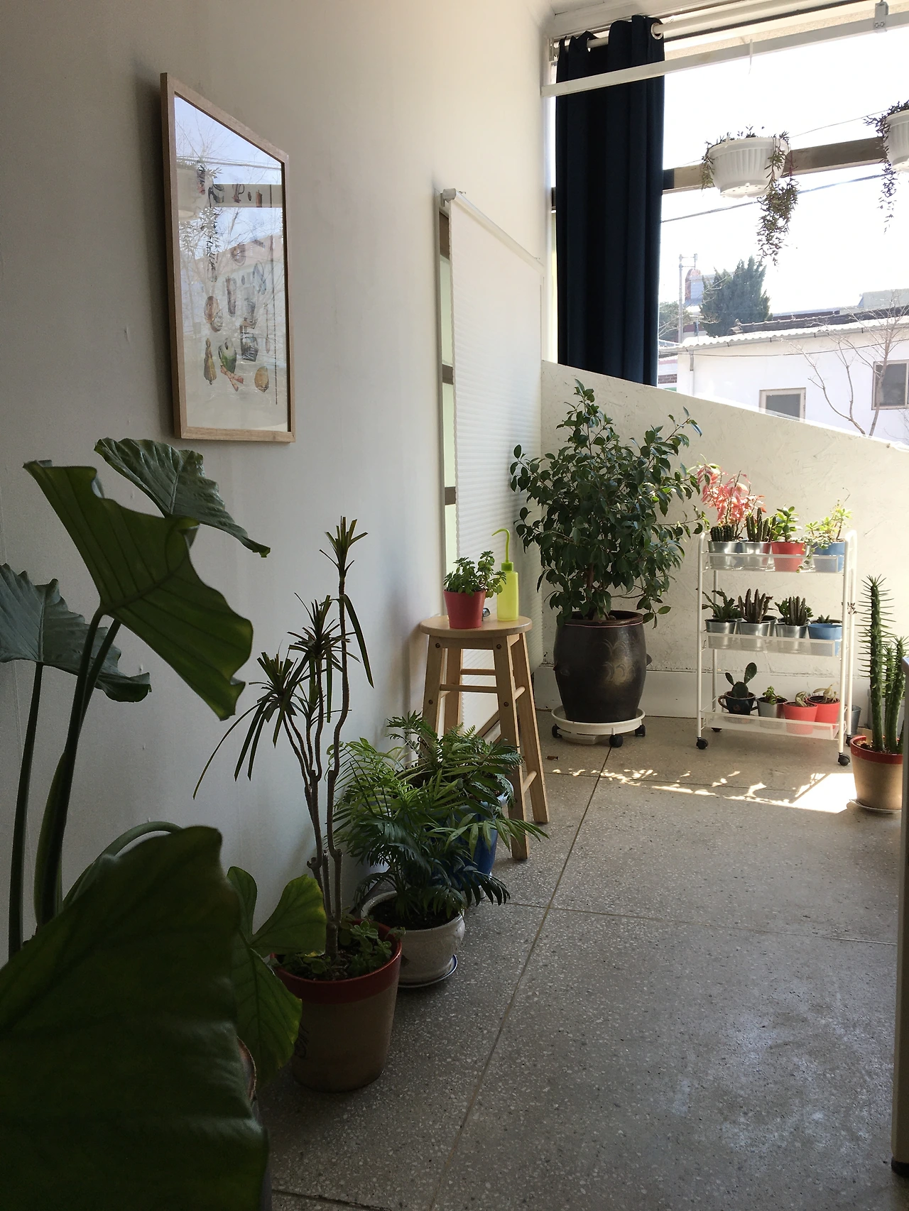 집에 둬서 죽을 위기에 놓인 화분을 작업실로 데려왔다. 우스꽝스러운 스포츠머리의 화초를 보며