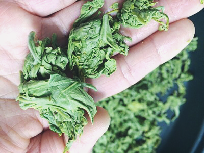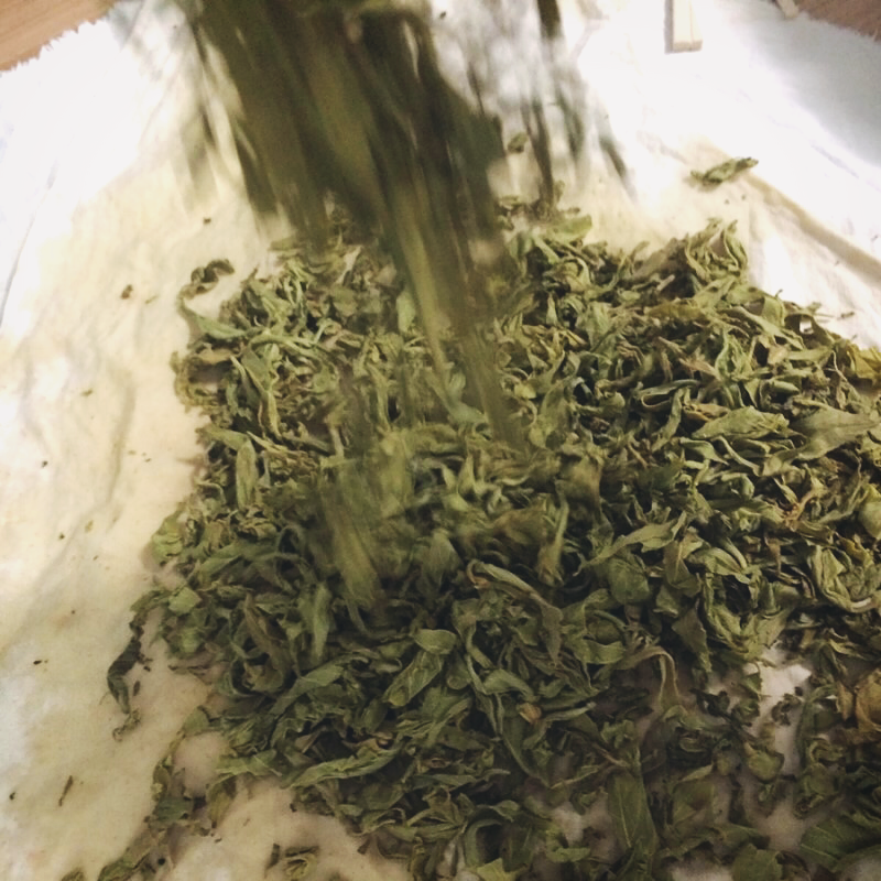 잎에 수분이 없어지면 [유념]을 뺀 나머지 과정을 바스락 기척이 날 때까지 반복하여 덖고 식힌다. 과정 중에 뭉친 걸 하나하나 떼는 일이 가장 중요한 과정이자 중노동이다. 마지막에 수분체크를 반복하여 완벽히 건조한다. (방법은 아래의 영상 속에~^^)