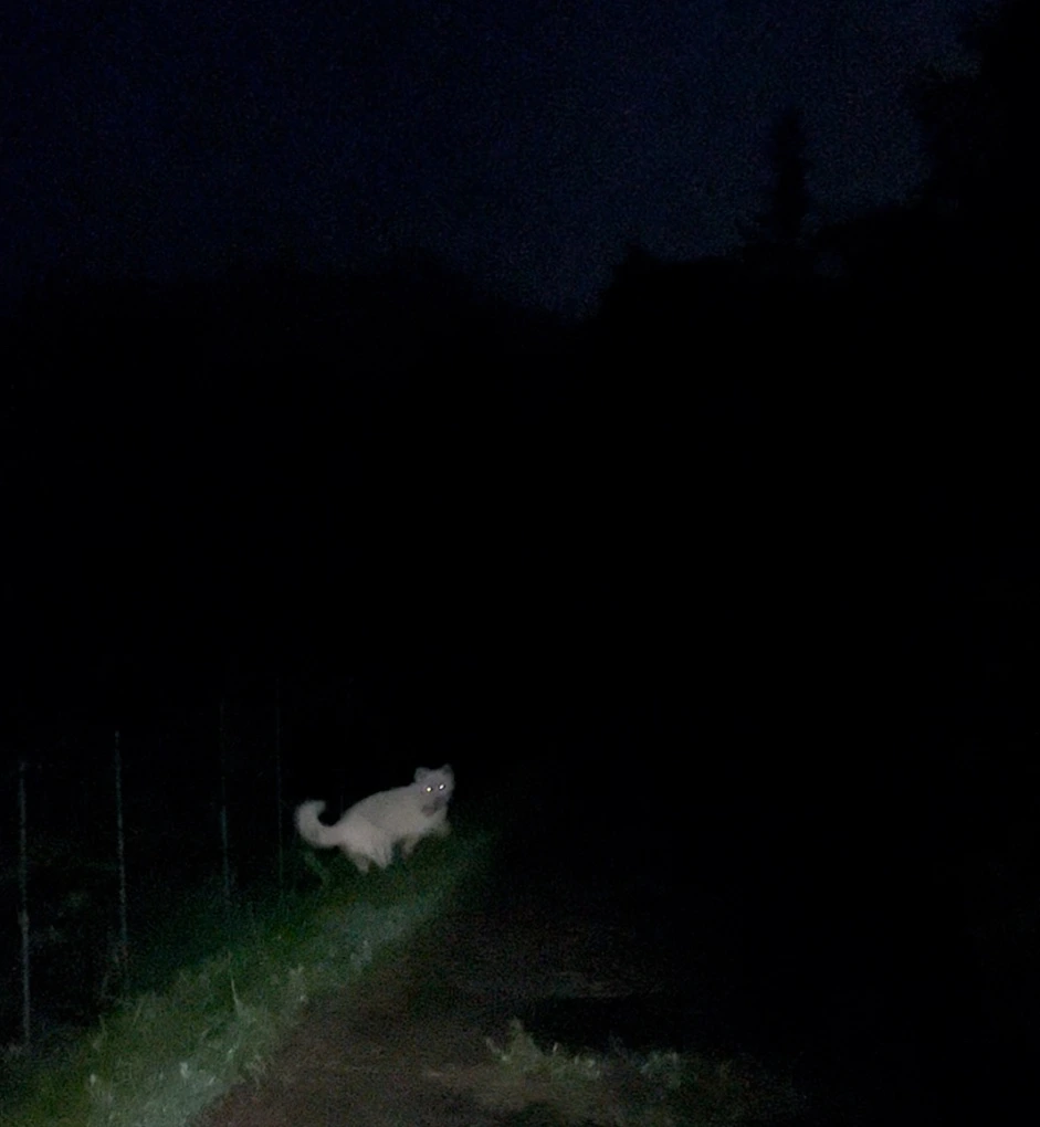 어느 나무에 아기들을 매달았을까 두리번거리고 있는데 염치가 저 멀리서부터 나를 향해 전 속력으로 달려와 헤드랜턴이 밝힌 지대 안으로 들어왔다.