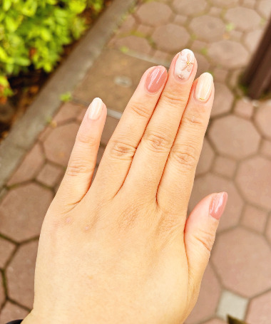 한 시간 정도 걷고 나니 어느새 네일숍 근처에 도착했다. 네일도 늘 그레이나 진청이나 베이지의 그러데이션으로 했는데 이번에는 좀 색다르게 디자인으로 골랐다. 단축근무로 생활비도 빠듯하다면서 무슨 네일이냐라고 생각할지도 모르지만 유일하게 내가 기분전환으로 하는 나 자신을 위한 보상이다. 네일을 하는 도중에 샵이 갑자기 정전이 돼서 직원분이 상당히 당황해했었다. 젤 네일인데 굳히기 위한 LED기계를 쓸 수 없다는 게 가장 문제였는데 한 10분 정도 지났으려나 남자분들이 우르르 들어오더니 다른 직원분들과 이야기를 하고는 전기를 복구해 주고 가셨다. 알고 보니 샵이 있는 건물이 지어진 지 42년 된 건물인데 위층이 지난밤 비로 누수가 돼서 고치러 오셨던 분들이 샵의 전기도 같이 봐주고 가셨다. 그 덕분에 무사히 네일 완성!