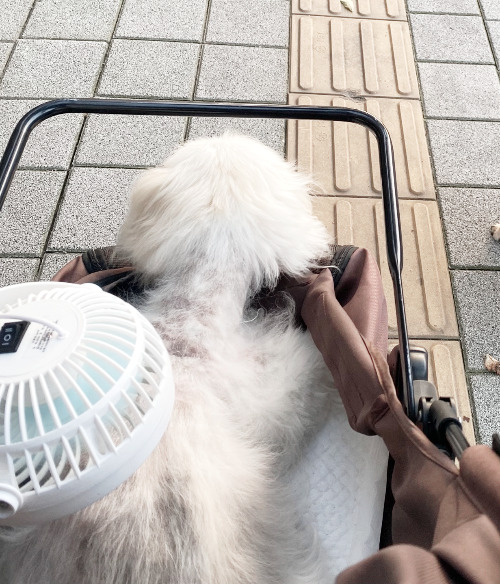 녀석의 뒷다리힘이 빠지게 되면서 점차 스스로 걷는 것이 어려워졌다. 당장은 녀석을 안고 나갔지만 6-7kg에 육박하는 녀석을 계속 안고 있기란 힘에 부치는 일이었다. 그리고 막상 바닥에 내려주어도 걷질 못하니 멍하니 그 자리에 있었다. 이런 우리에게 펫모차는 필수불가결한 것이었고 그 후 나는 펫모차를 두세 번 바꾸며 지금까지 매일 사용하고 있다. 하루에 적어도 두 번의 산책을 나가는데 하나는 높이가 높은 편이고 하나는 좀 낮은 편으로 각각 장단점이 있다. 낮은 것은 바닥과 가까워 강아지가 직접 걷는 듯한 느낌을 받는 것 같고 높이가 높은 것은 낮은 것에 비해 아늑하고 강아지가 멀리 내다볼 수 있다.