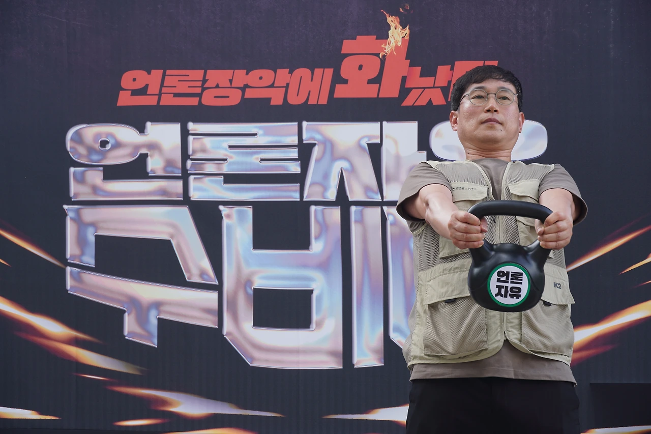 지난 9월 10일 서울 세종대로 광화문역 5번 출구 앞에서 열린 전국언론노동조합 언론자유수비대 행사 ‘언론자유 무게를 견뎌라!’