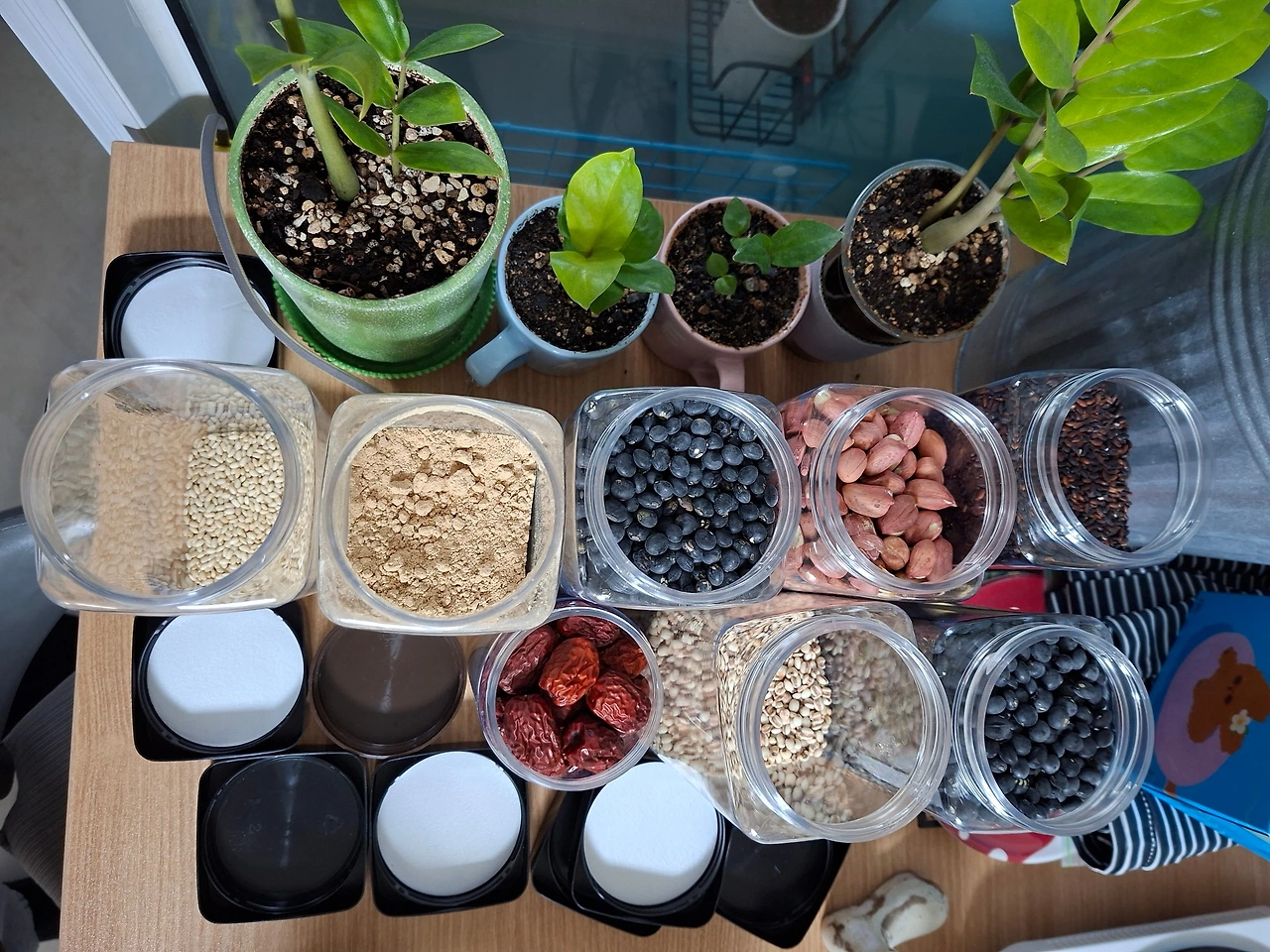 ▴멈춘 냉장고 냉동실에서 나온 것. 콩과 팥과 대추와 미숫가루 등속. 모두 어머니 아버지 텃밭에서 왔다.