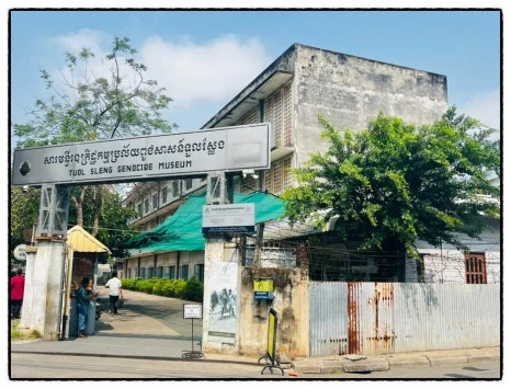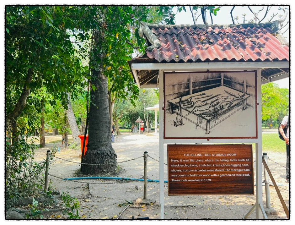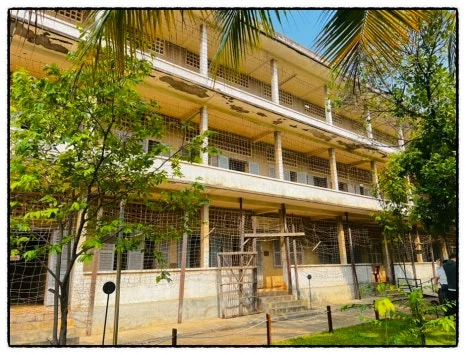 상상할 수도 없는 고문과 대학살이 이루어졌다. 사진을 찍다가 도저히 마주할 수 없어서 찍는 것을 포기했다. 건물은 쇠창살로 막아 놨다. 죽는 것조차 마음대로 할 수 없었던 잔인한 뚜얼슬랭 감옥은 바로 학교 건물이다.