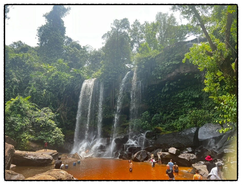 오늘은 프놈쿨렌 국립공원 투어로 크메르 제국 발원지, 천 개의 링가와 요니상, 쁘레앙톰 사원(와불상), 안젤리나 졸리 주연의 '툼레이더' 촬영지인 폭포, 절벽 등을 둘러보고 사진도 찍었다. 폭포에서는 물놀이가 가능해서 수영복 차림으로 물놀이를 즐기는 외국인들도 많았다. 폭포 물소리는 땀으로 흥건한 내 몸을 위로해 주었다.